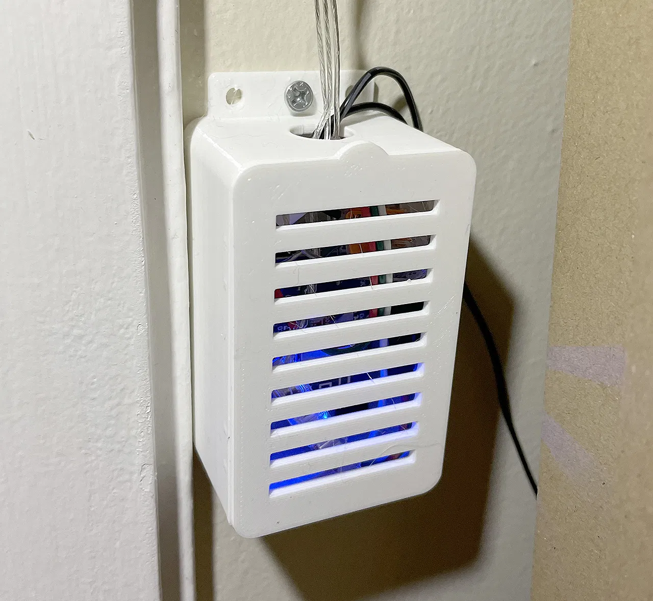 Bản sửa đổi hộp PCB nhỏ cho WLED, thêm mặt bích gắn, lỗ thông gió làm mát và kéo dài để chứa dây điện, đầu nối Wago. Chốt nắp được làm dày hơn. Thiết kế mới dài và cao hơn cho không gian đấu dây và bộ ESP.