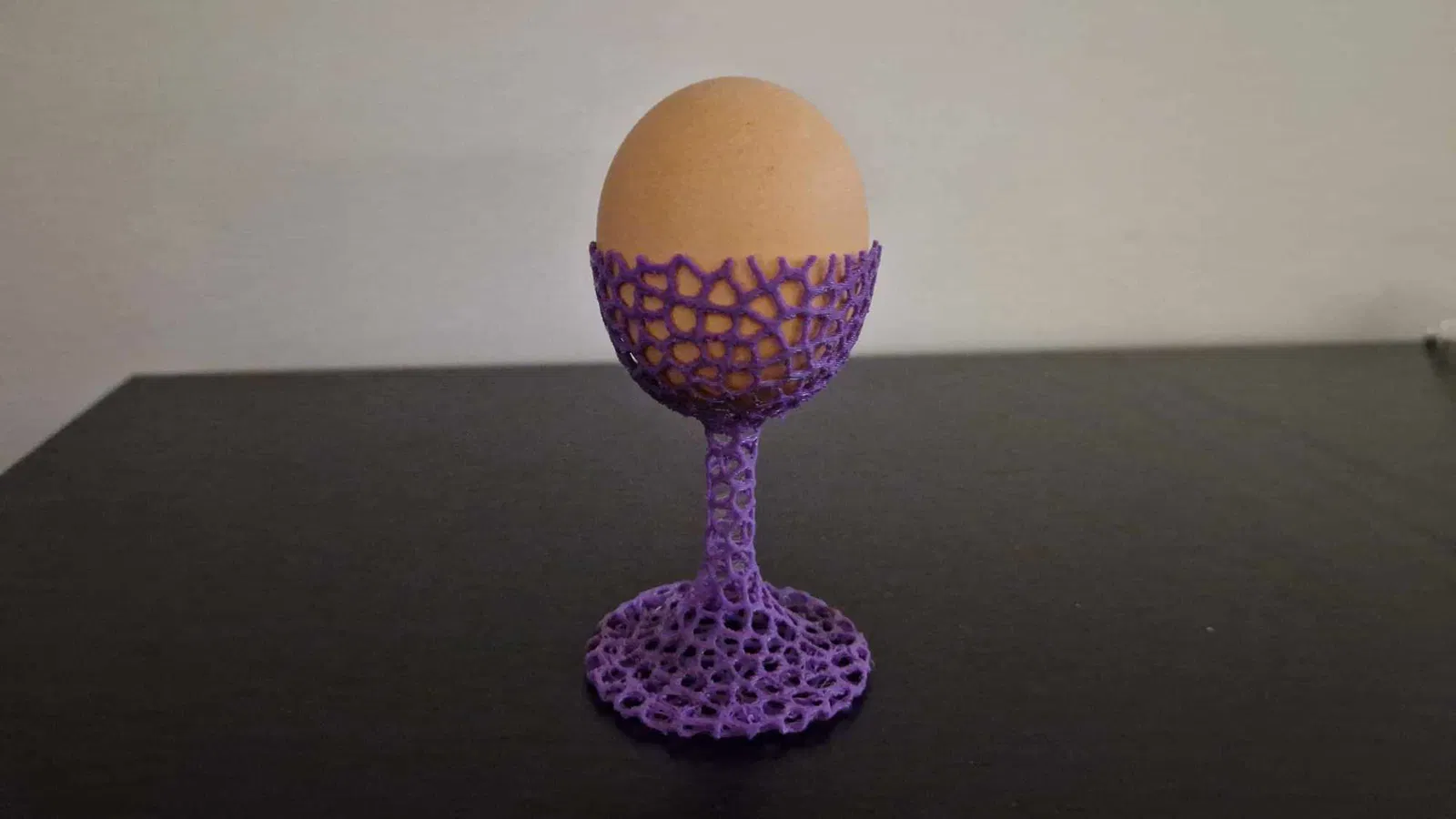 Cốc đựng trứng luộc lòng đào nhẹ nhàng, với thiết kế hoa văn voronoi độc đáo. Không cần vật liệu hỗ trợ, chỉ cần in ở tốc độ chậm hơn để có sản phẩm đẹp nhất.