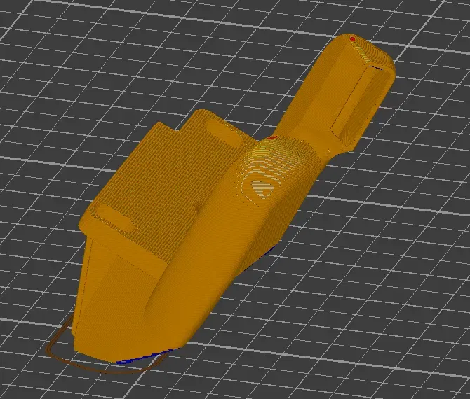 Cả hai phần của thân máy đều dễ in. Giá đỡ cáp cũng đơn giản, nhưng đối với vỏ quạt (vỏ quạt) tôi khuyên bạn nên sử dụng vật liệu ASA hoặc Nylon. Vỏ quạt gần với bộ gia nhiệt và một bên có thể bị suy giảm nếu bạn in từ PETG, đặc biệt nếu bạn in ABS, ASA, Nylon, v.v. với nhiệt độ in cao hơn. Tôi sử dụng Fiberlogy Nylon PA12 với 15% CF (hoặc Prusament PCBlend với CF).