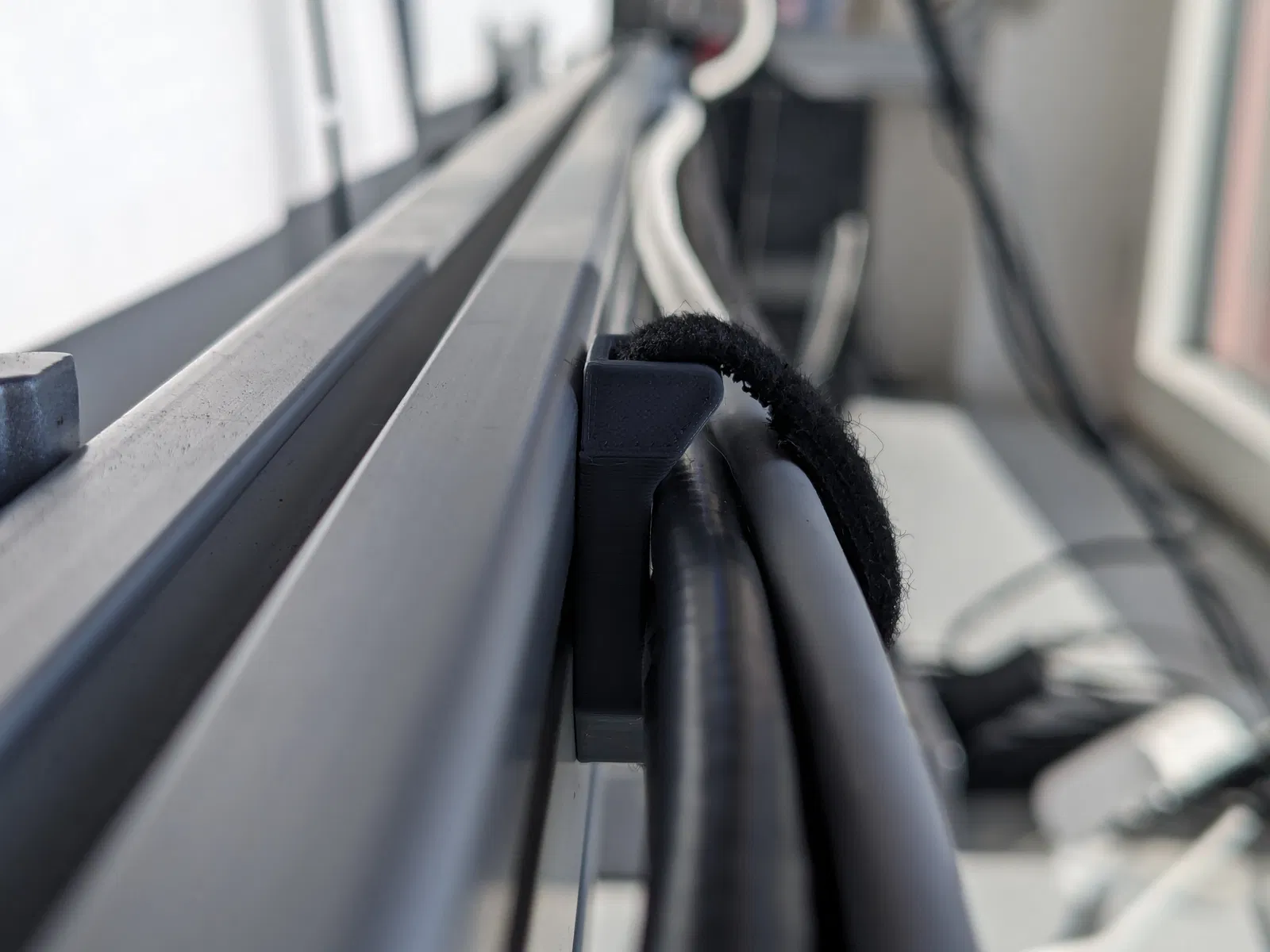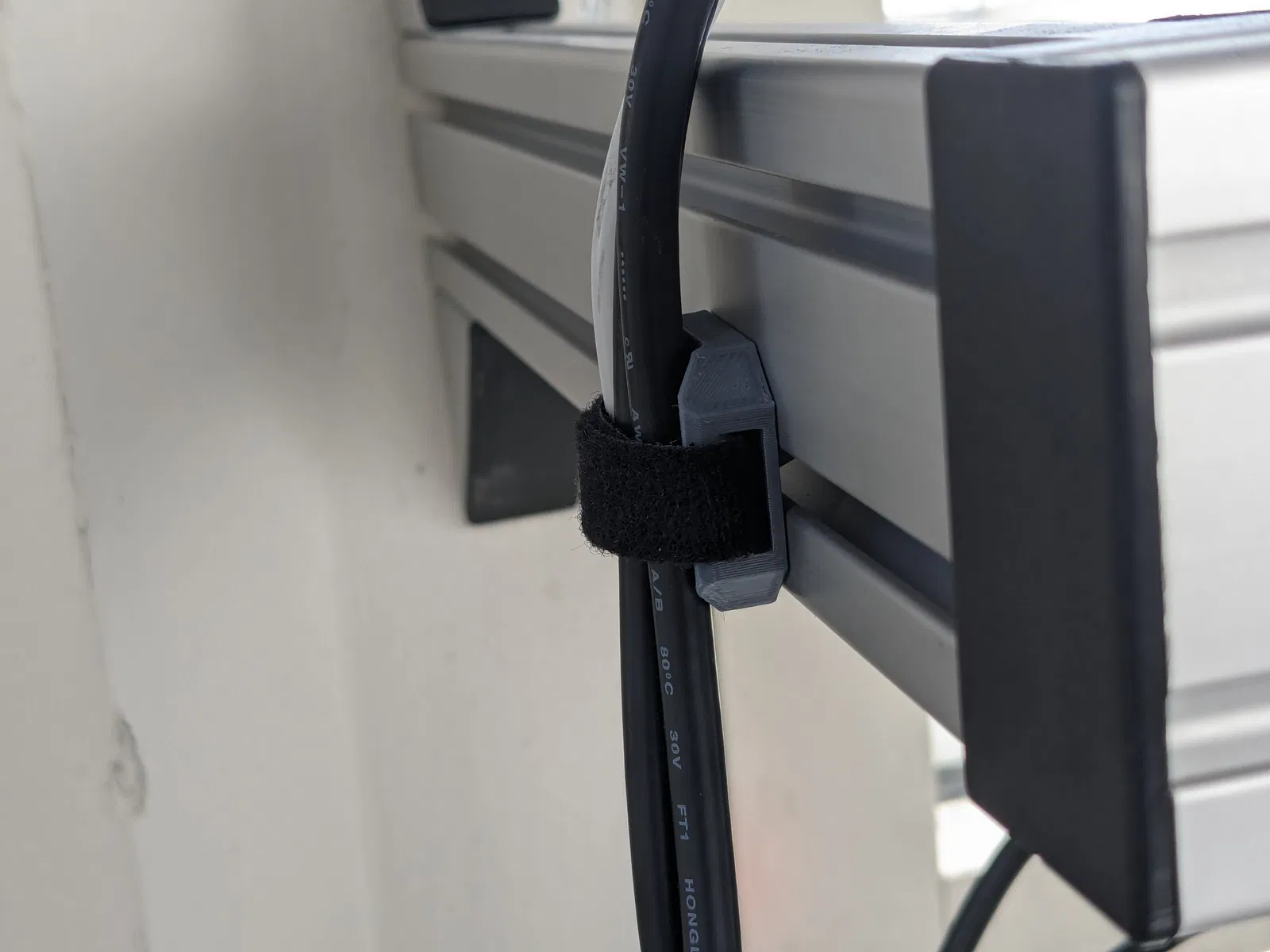 Đây là một đế giữ cáp cho thanh nhôm định hình loại I 3030 (rãnh rộng 6mm) mà không cần ốc vít. Thay vào đó, nó được lắp vào rãnh theo góc 45° rồi xoay theo hướng ngang hoặc dọc, và nó sẽ tự giữ cố định. Điều này có nghĩa là cả cáp chạy song song dọc theo thanh nhôm và cáp chạy vuông góc với nó đều có thể được cố định.