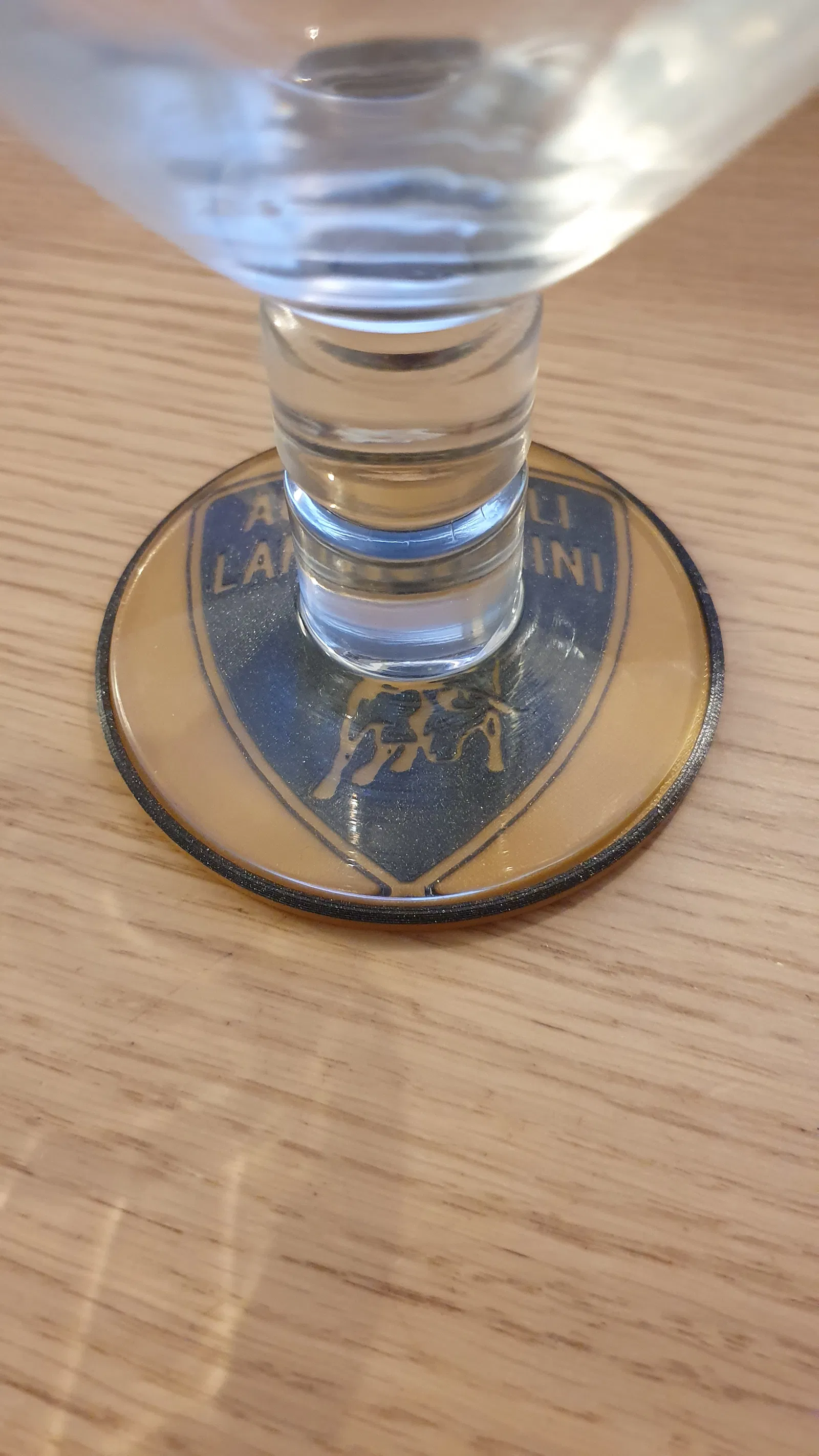 Đế ly bia với logo Lamborghini, in 2 màu bằng cách đổi dây tóc. Tệp gcode có sẵn cho Prusa Mk3. Logo lấy từ nguồn cho phép sử dụng phi thương mại. Viền cao giúp logo mỏng vẫn chắc chắn.