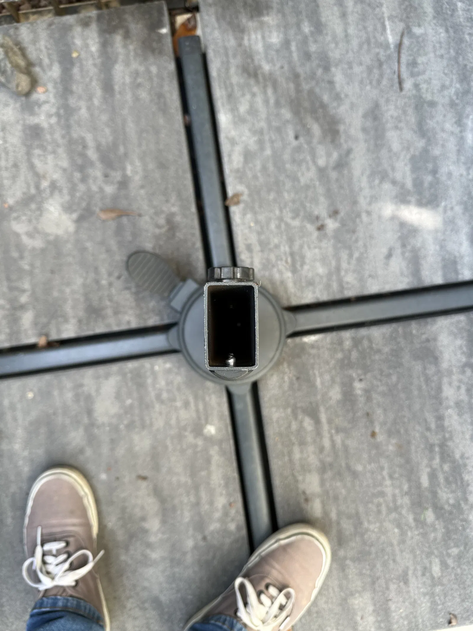 Hè rồi tôi có mua cái ô này để xài. Tới mùa đông tháo ra thì thấy cái chân đế nó không có cái nút để bịt cái lỗ ống lại, để mưa nó vô. Thế là tôi làm cái này.
