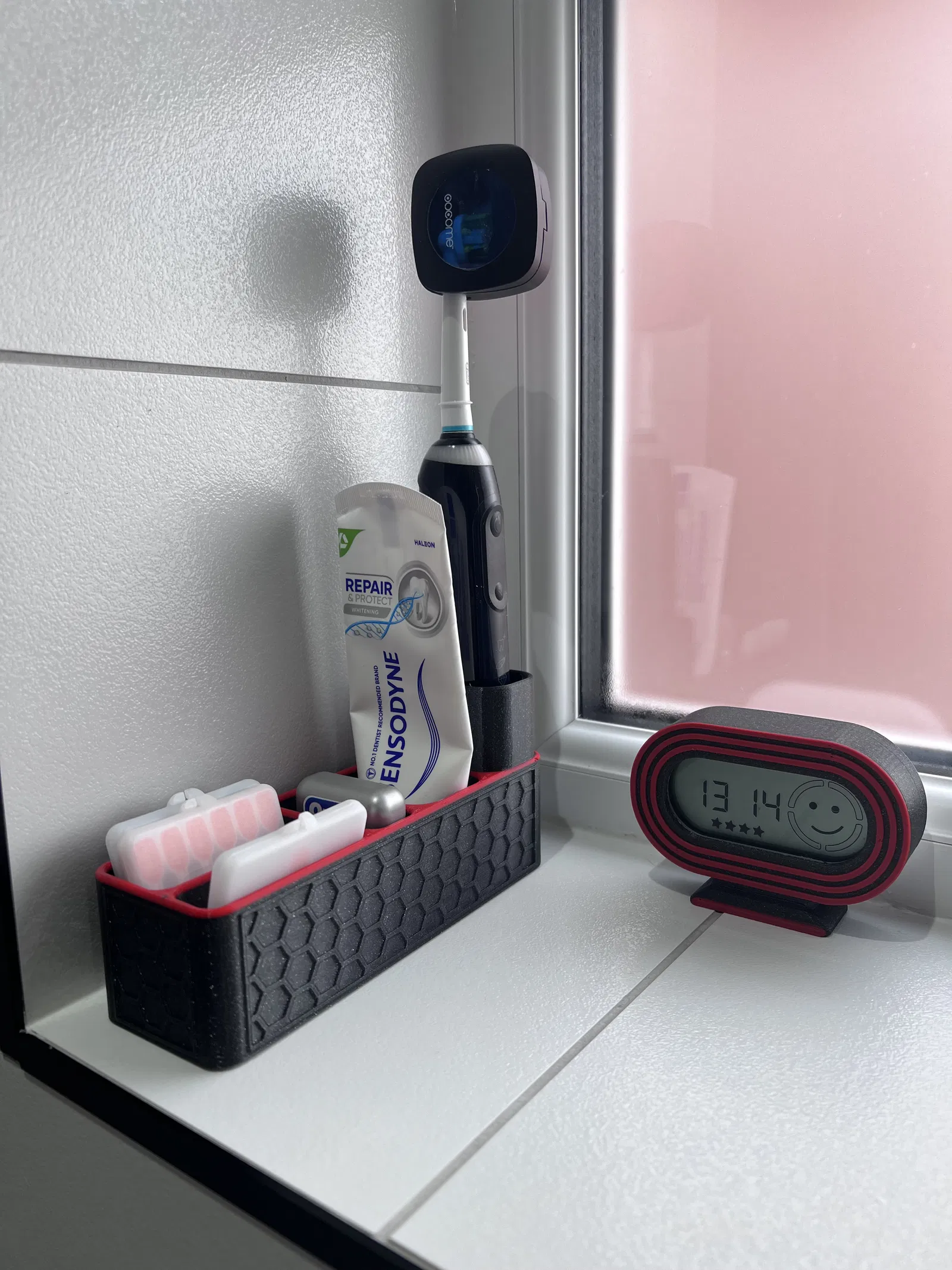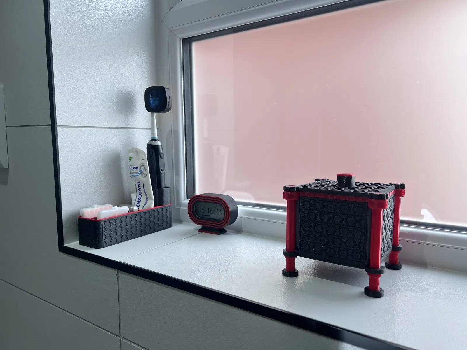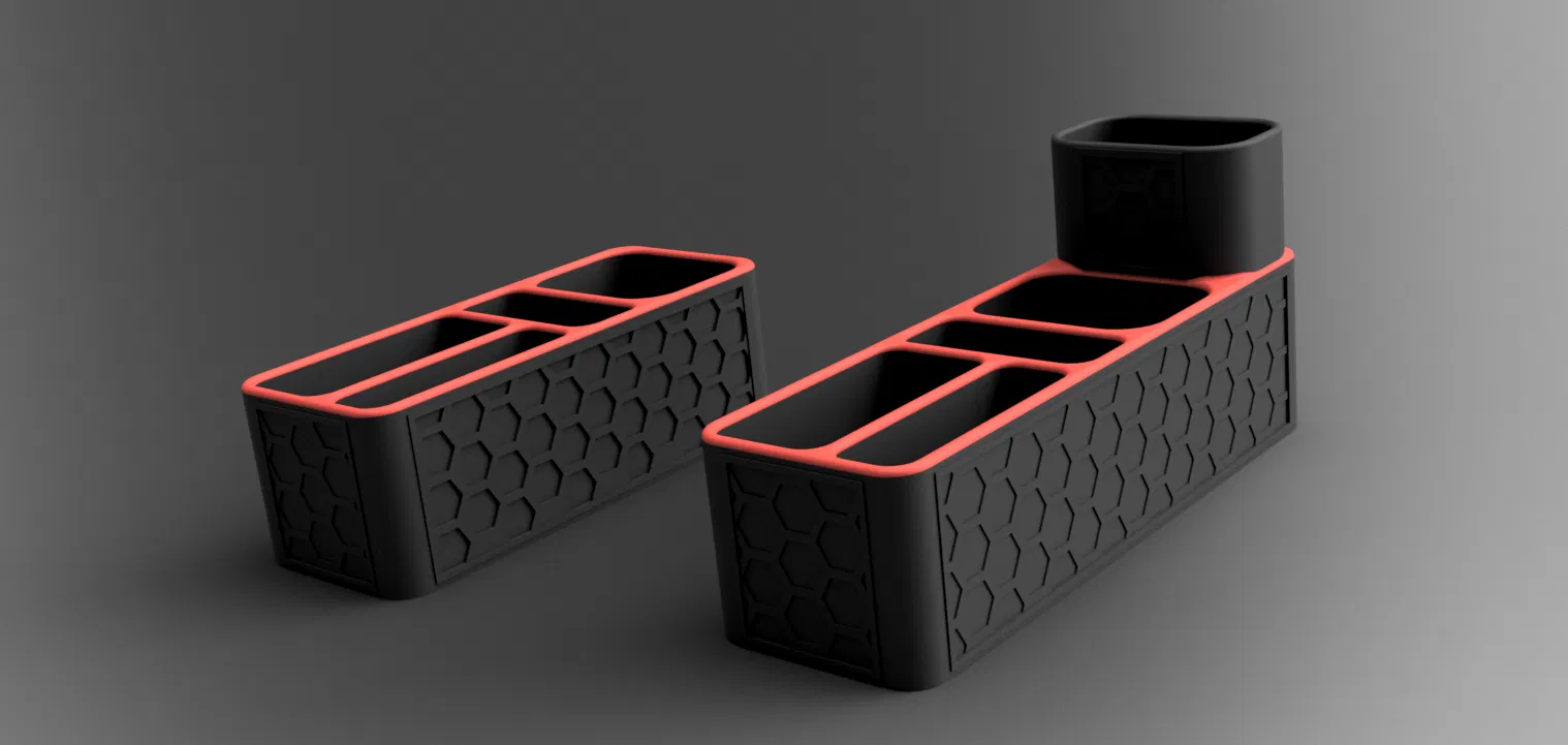 Hộp Đựng Đồ Nha Khoa Phòng Tắm Thiết Kế Lục Giác Phiên bản nhỏ không có chỗ cắm bàn chải và phiên bản dài hơn có chỗ cắm bàn chải. Được thiết kế để phối hợp với Hộp Đựng Đồ Cạo Râu / Khay Đựng Xà Bông và Hộp Trang Trí trong các mẫu khác của tôi.