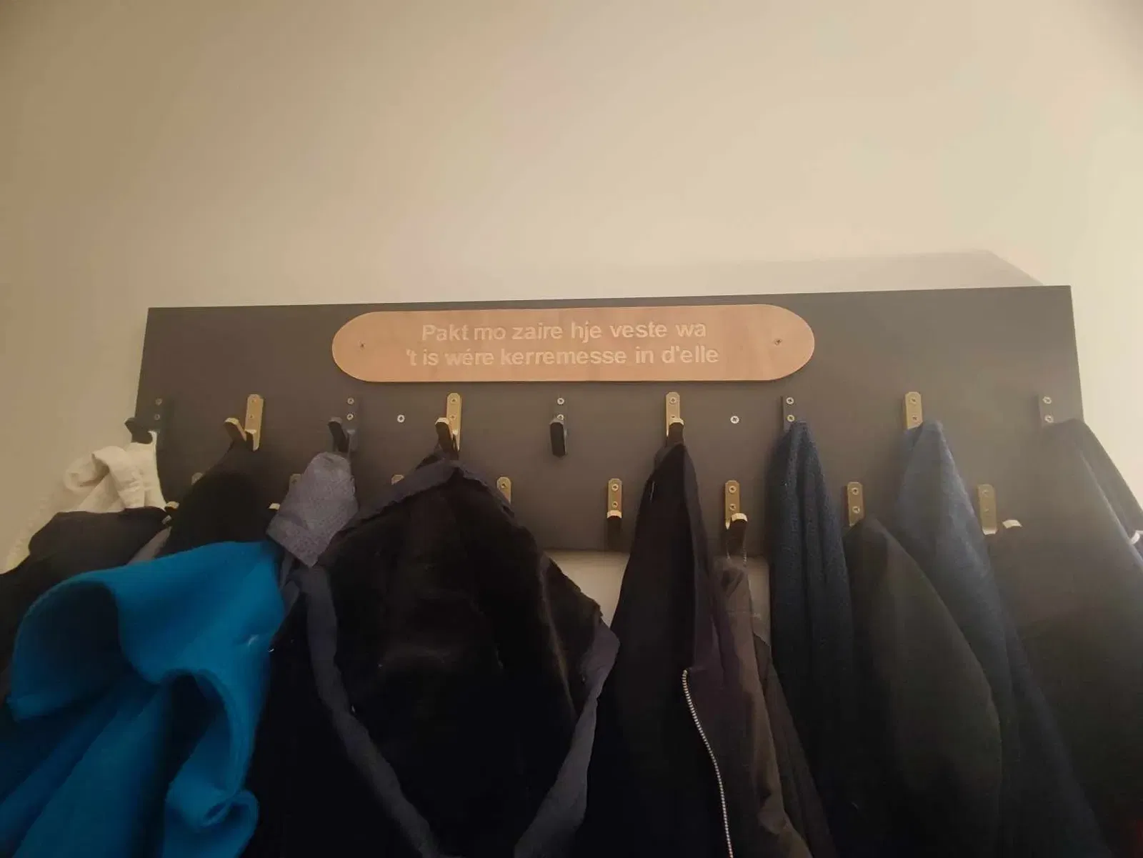 Tôi muốn làm một cái móc treo quần áo của riêng mình để sử dụng trong hành lang. Tôi đã sử dụng một máy CNC để làm phần chữ multiplex và vặn tất cả lại với nhau trên một cái kệ cũ.