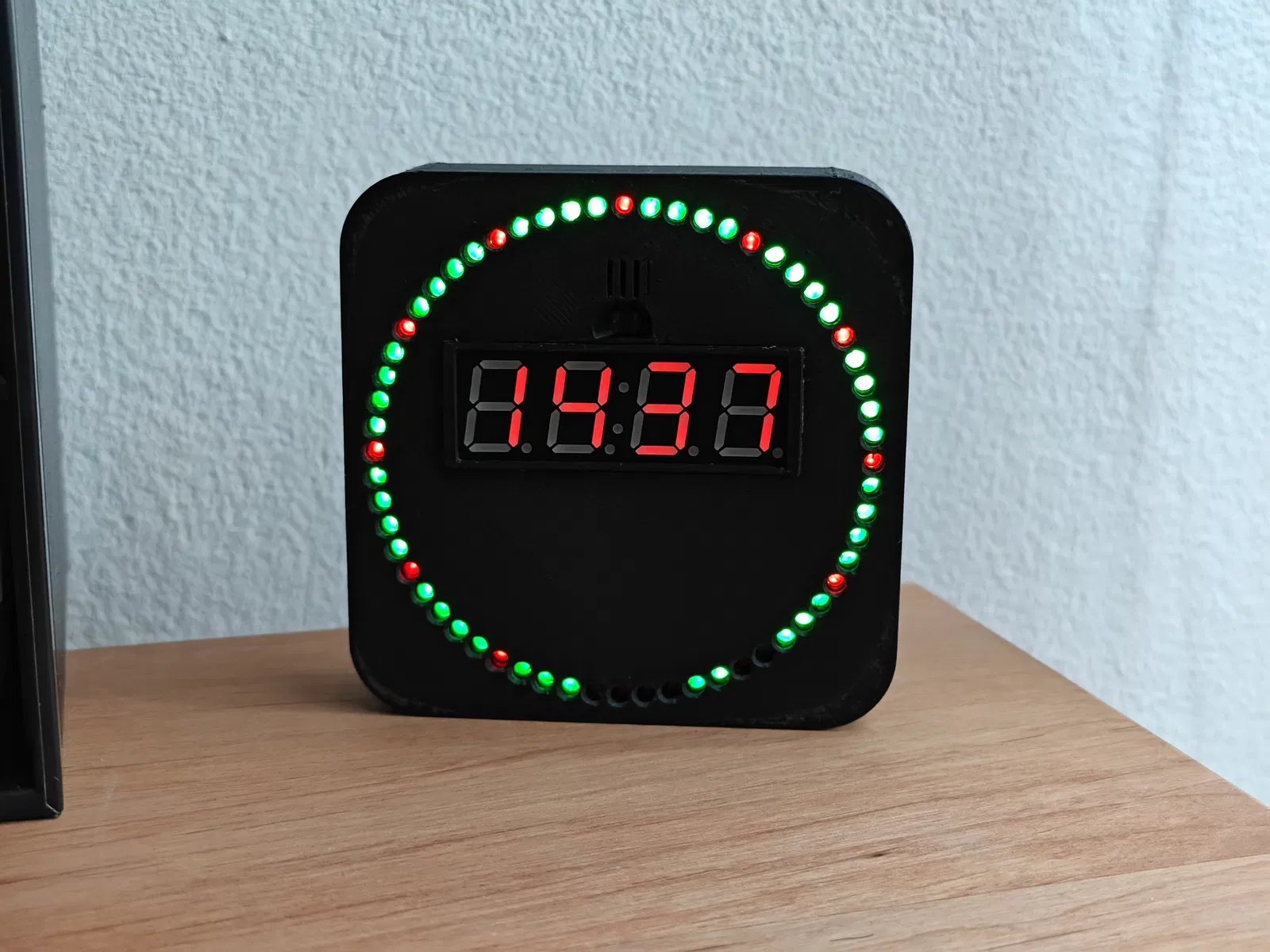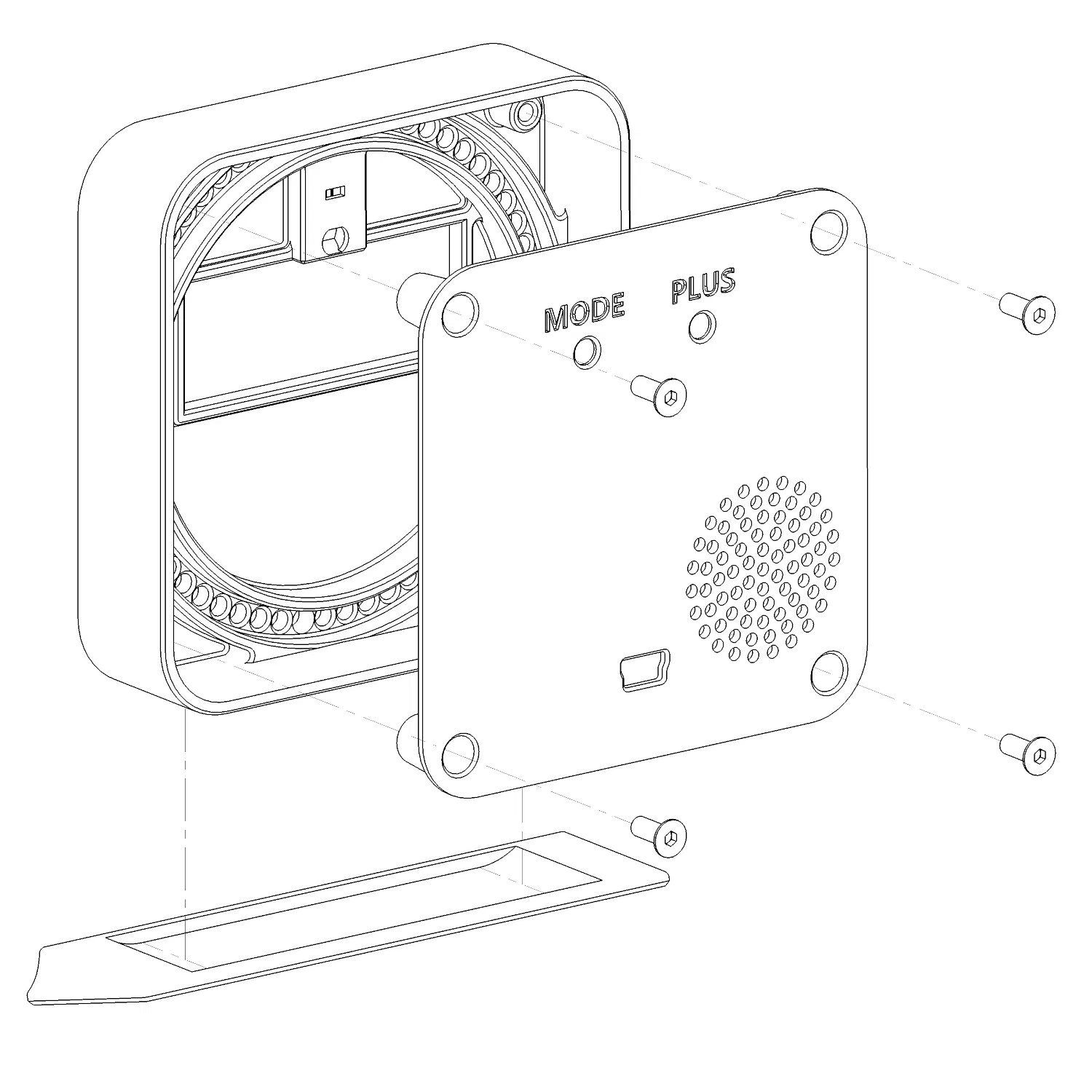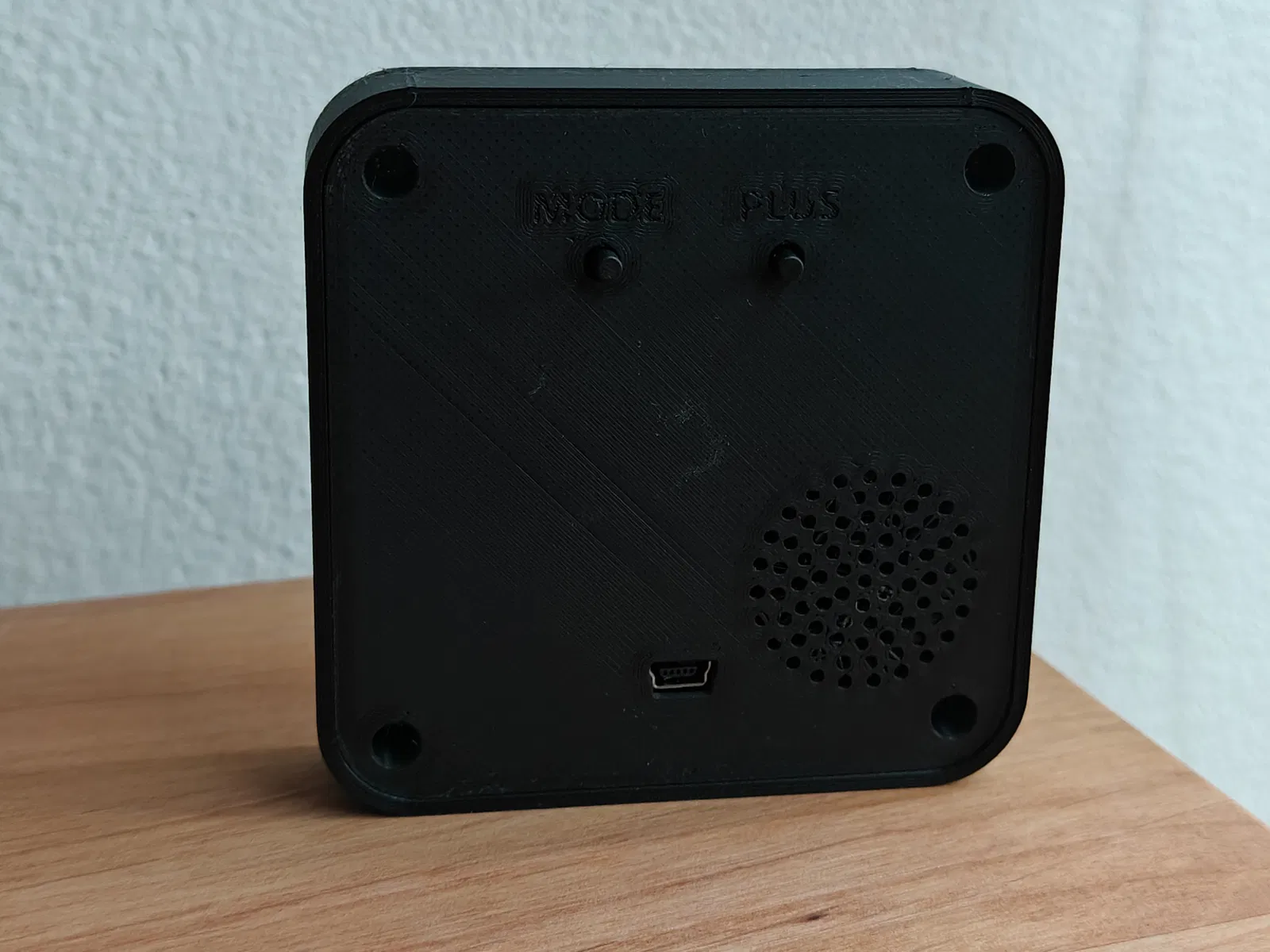 Một cái vỏ đơn giản cho Đồng hồ LED Xoay DS1302. Vỏ có khoét lỗ cho cảm biến ánh sáng, cảm biến nhiệt độ và màn hình. Các lỗ cho nút bấm, loa và cổng mini-USB nằm ở mặt sau. Cần 4 con ốc M3 để lắp ráp. Bài tập hàn linh kiện đơn giản này rất phù hợp cho người mới bắt đầu.