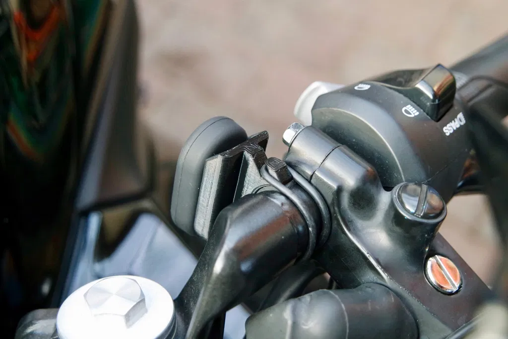 Cái giá đỡ ghi đông này là dành riêng cho remote Xiaomi Yi trên xe CBR300R, với yêu cầu không gian sử dụng khoảng 8mm trên ghi đông clip-on. Bạn sẽ cần thêm vòng cao su và miếng lót cao su để lắp đặt.