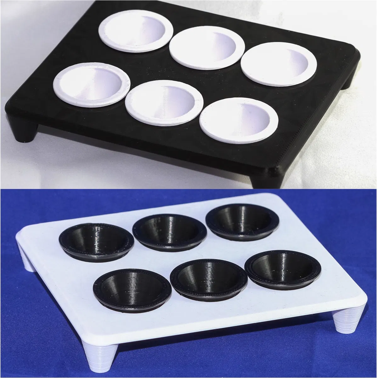 Khay đựng sơn có cốc tháo rời tiện lợi, dễ in, in xong chưa đầy 1 tiếng. Phiên bản mới có cốc vặn vào khay, chắc chắn hơn. Thích hợp cho cả trẻ em và người lớn. Có cả loại cốc treo tự do và cốc ren.