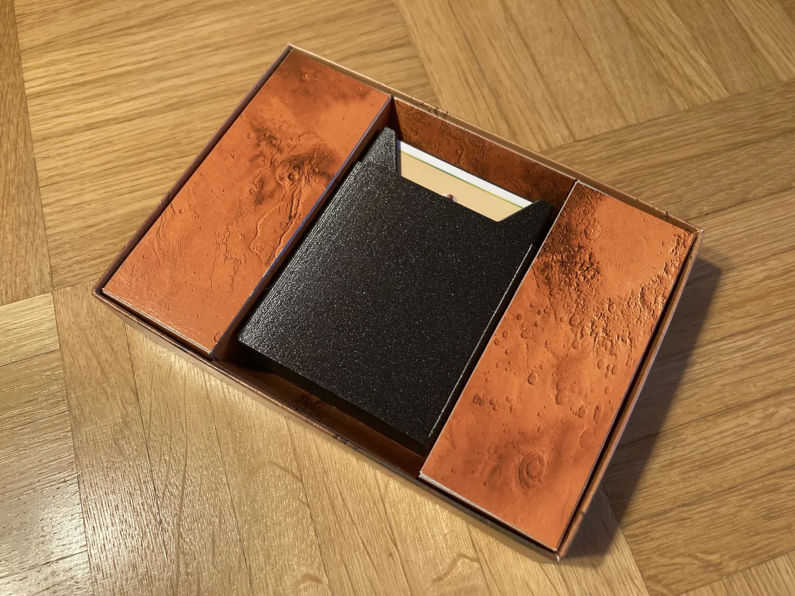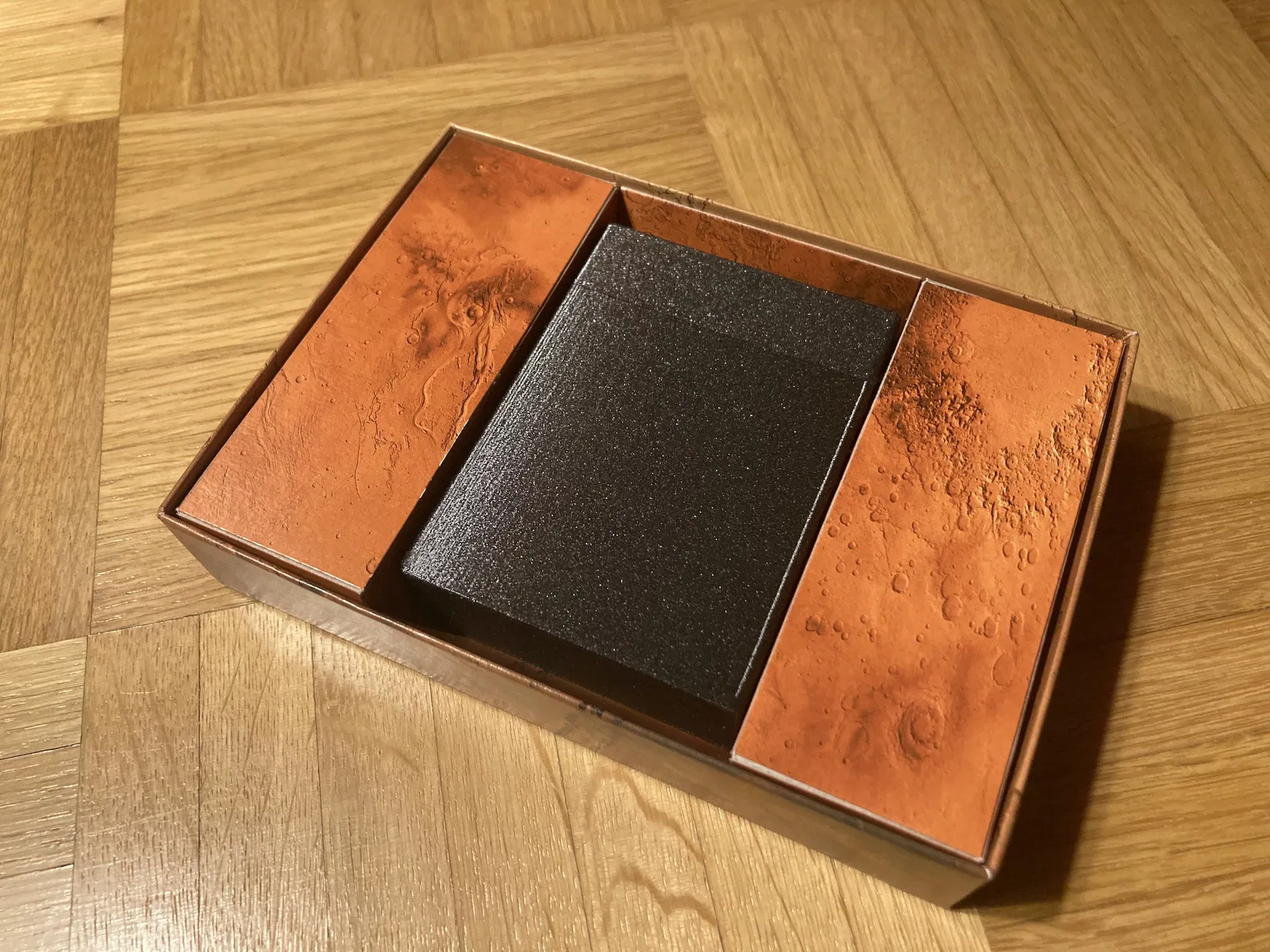 Hộp đựng mở rộng cho bàn cờ Terraforming Mars Prelude này được in 3D. Nó giữ mọi thứ cố định. Hộp đựng này được thiết kế đặc biệt cho Terraforming Mars Prelude, nhưng vì nó là một mô hình tham số hoàn toàn có thể tùy chỉnh, nó cũng có thể được sử dụng cho các trò chơi bàn cờ khác với các lá bài khác nhau. Nó có thể in được hoàn toàn mà không cần hỗ trợ.