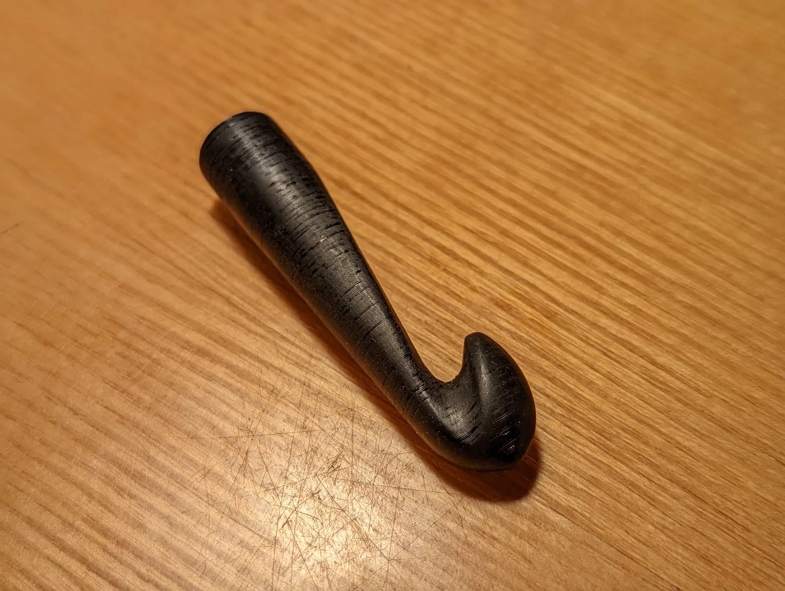 Một cái kim móc len có thể tùy chỉnh thông số, với tỷ lệ được sao chép từ kim móc nhôm dập trên thị trường. Bản in thử nghiệm cho thấy cần xử lý bề mặt thêm hoặc dùng vật liệu khác để đạt độ mịn mong muốn khi sử dụng.