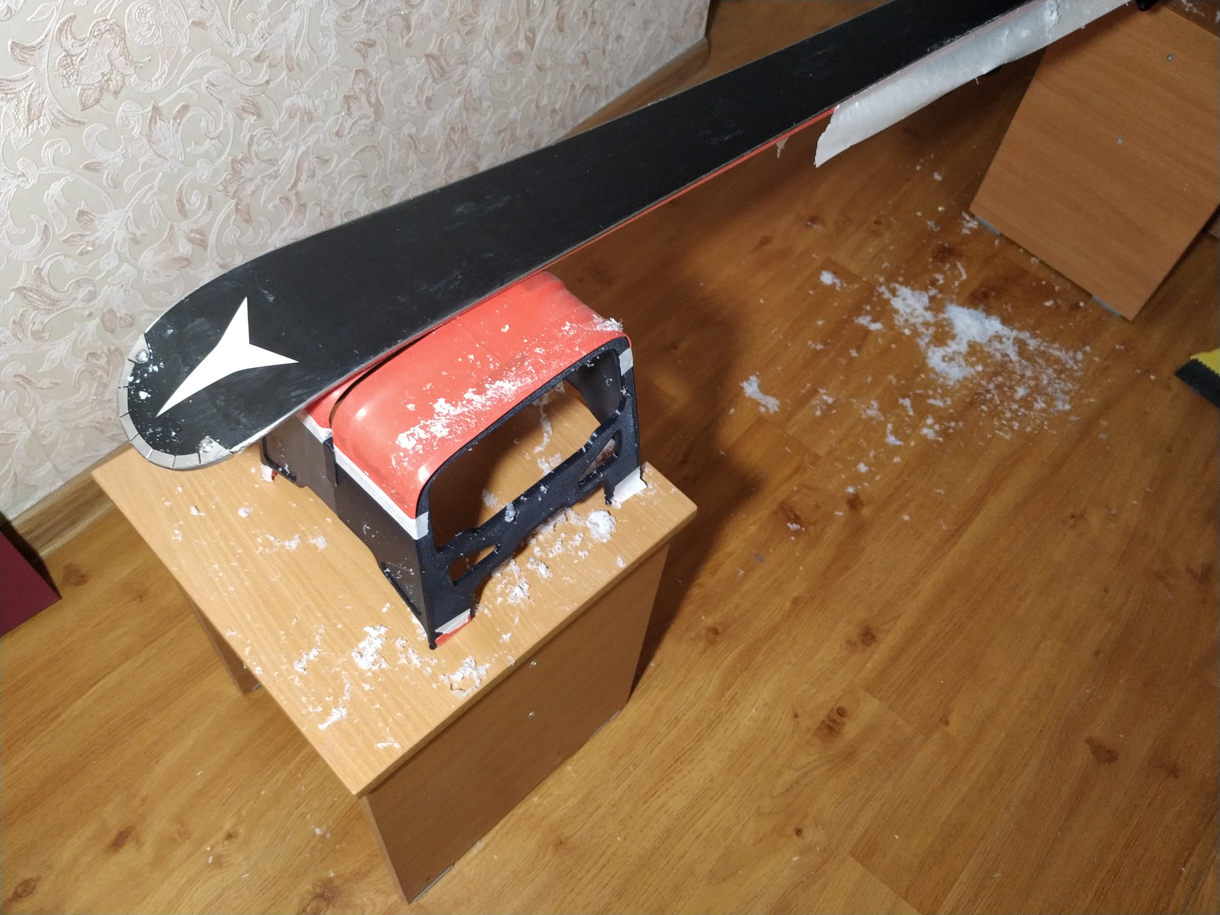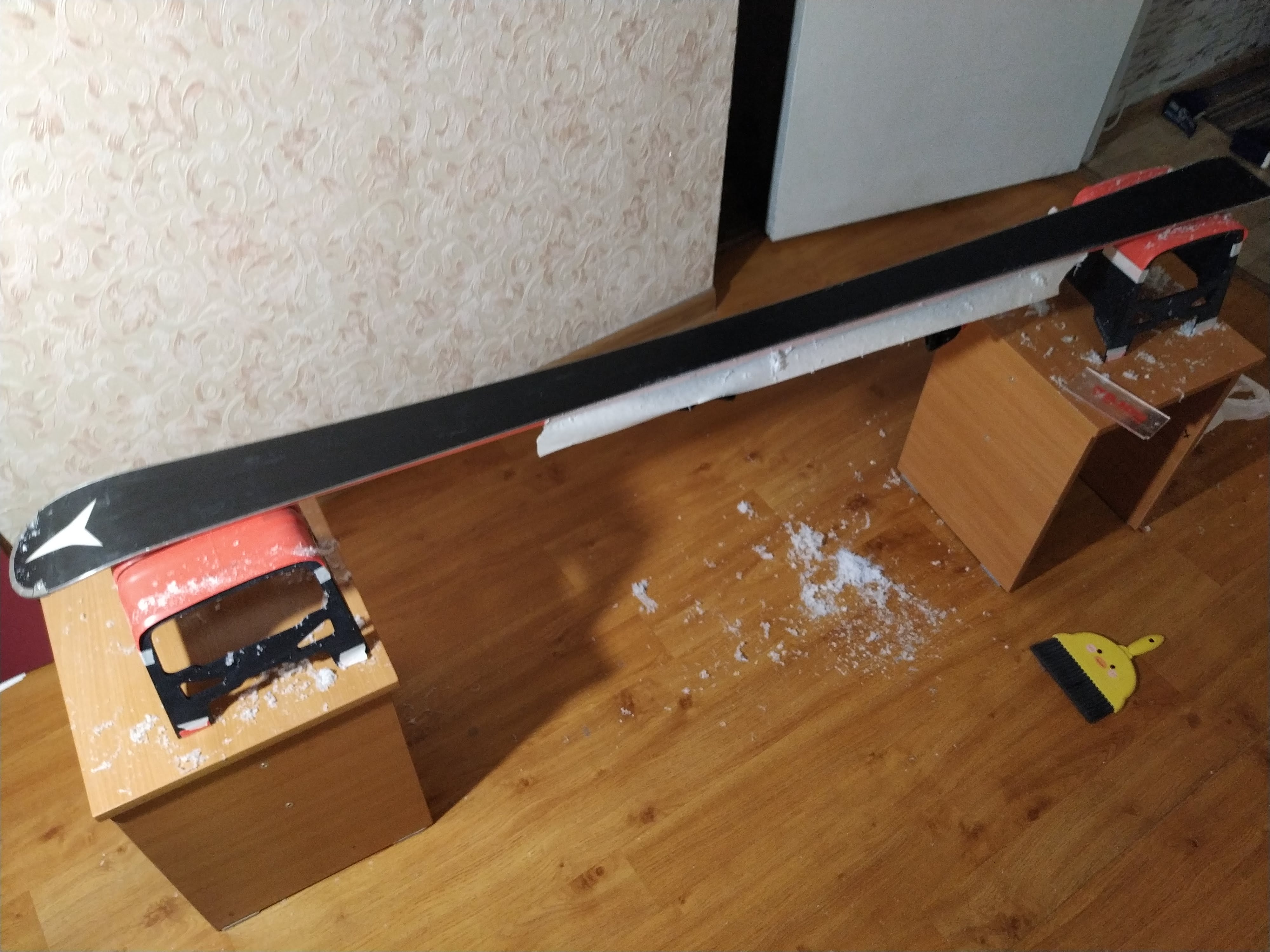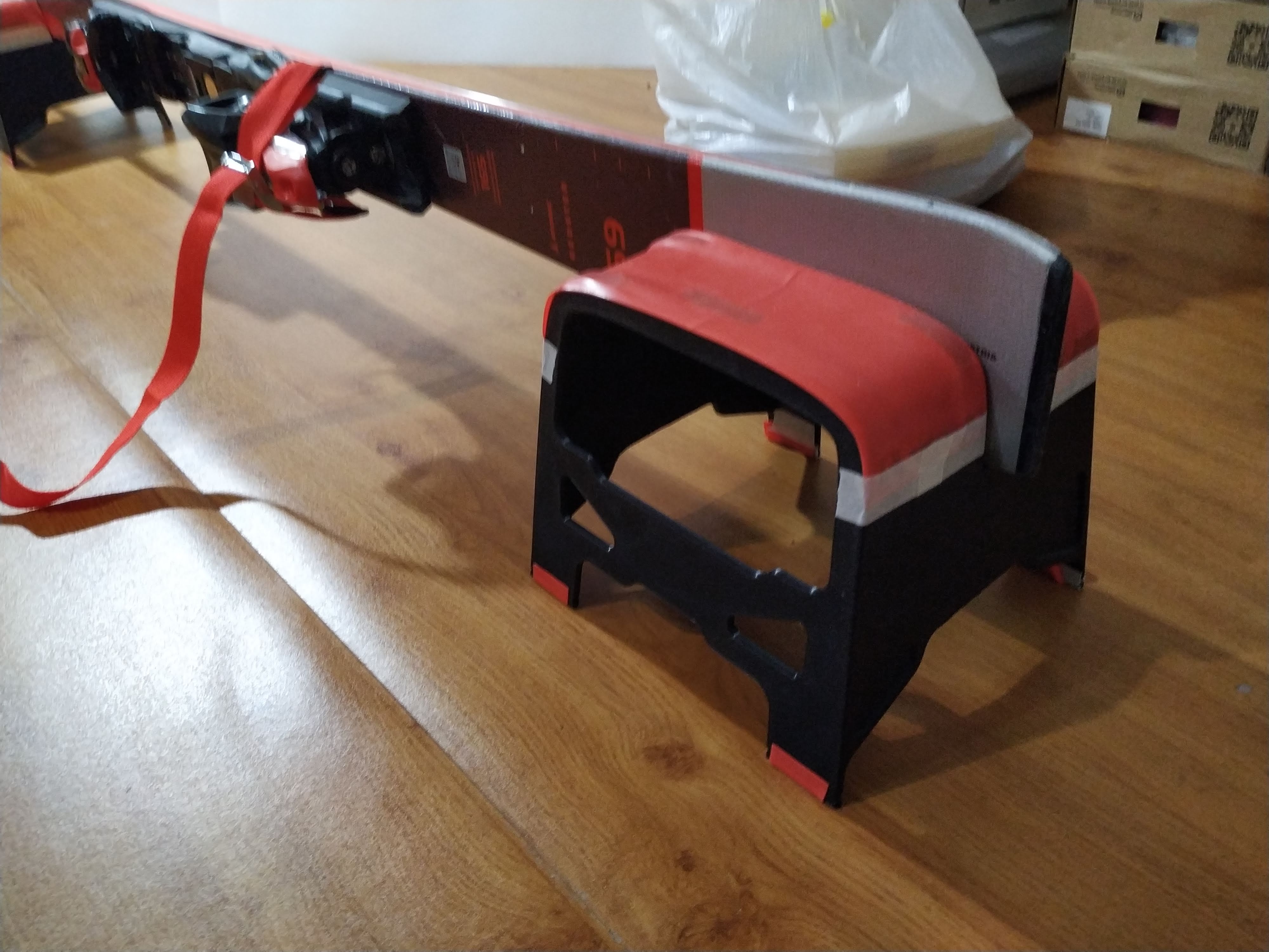 Đây là một giải pháp thay thế đơn giản, di động cho giá đỡ trượt tuyết truyền thống, thậm chí còn nhanh hơn khi sử dụng. Bạn có thể đặt ván trượt nằm phẳng để waxing hoặc đặt chúng vào khe để tinh chỉnh và mài bén cạnh. Nó giữ ván trượt rất tốt ở cả hai cách nhờ vào một dây kháng lực rẻ tiền dán trên bề mặt trên và chân đế. Dây kháng lực cung cấp độ bám tuyệt vời!