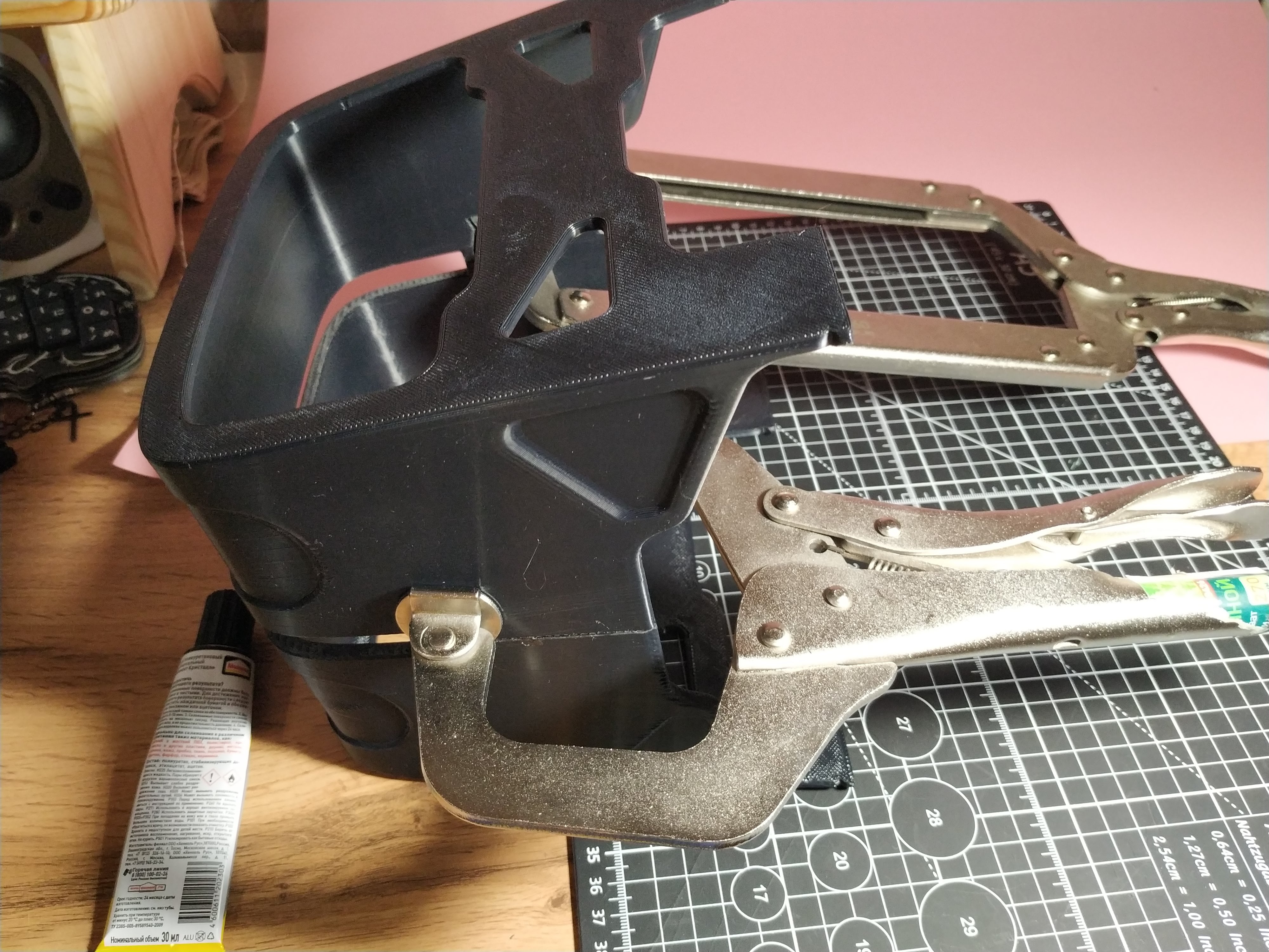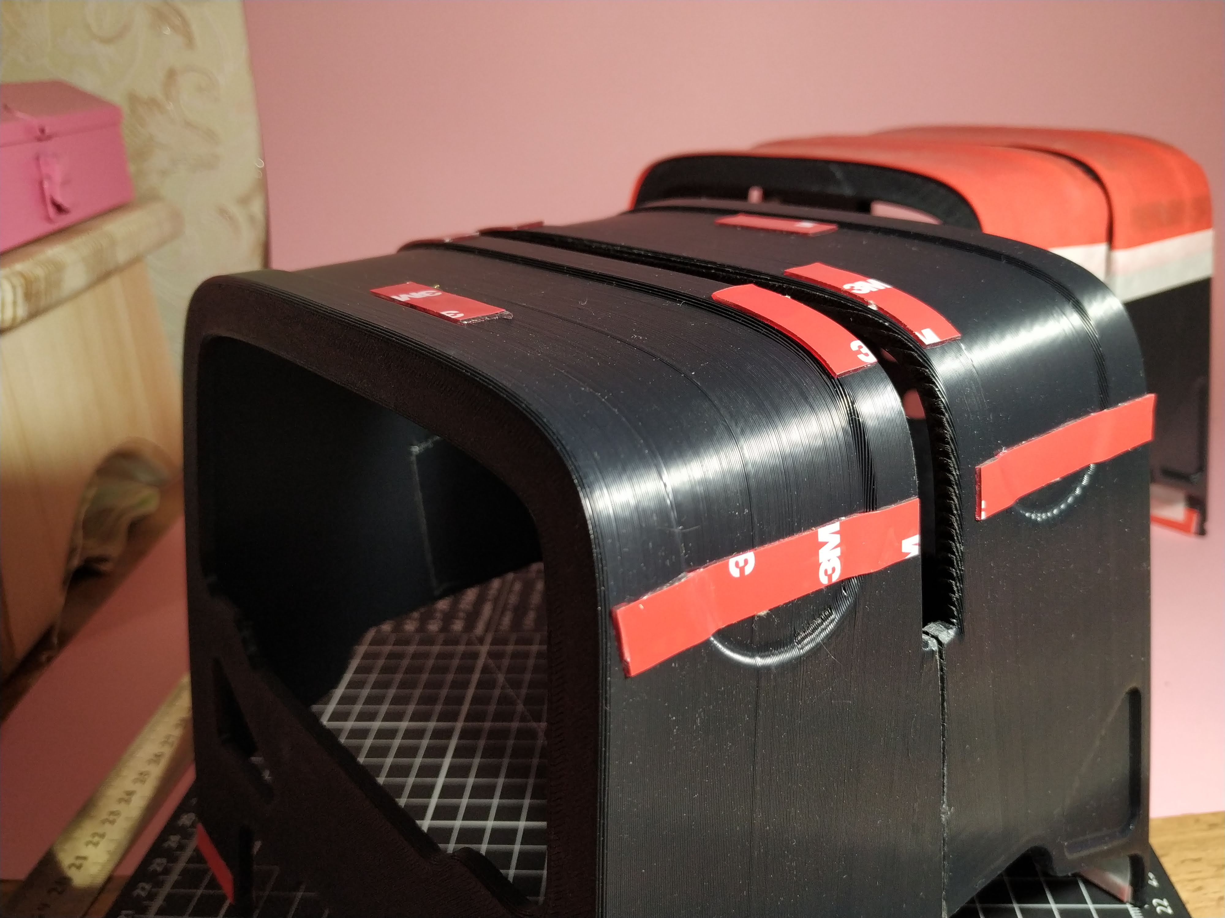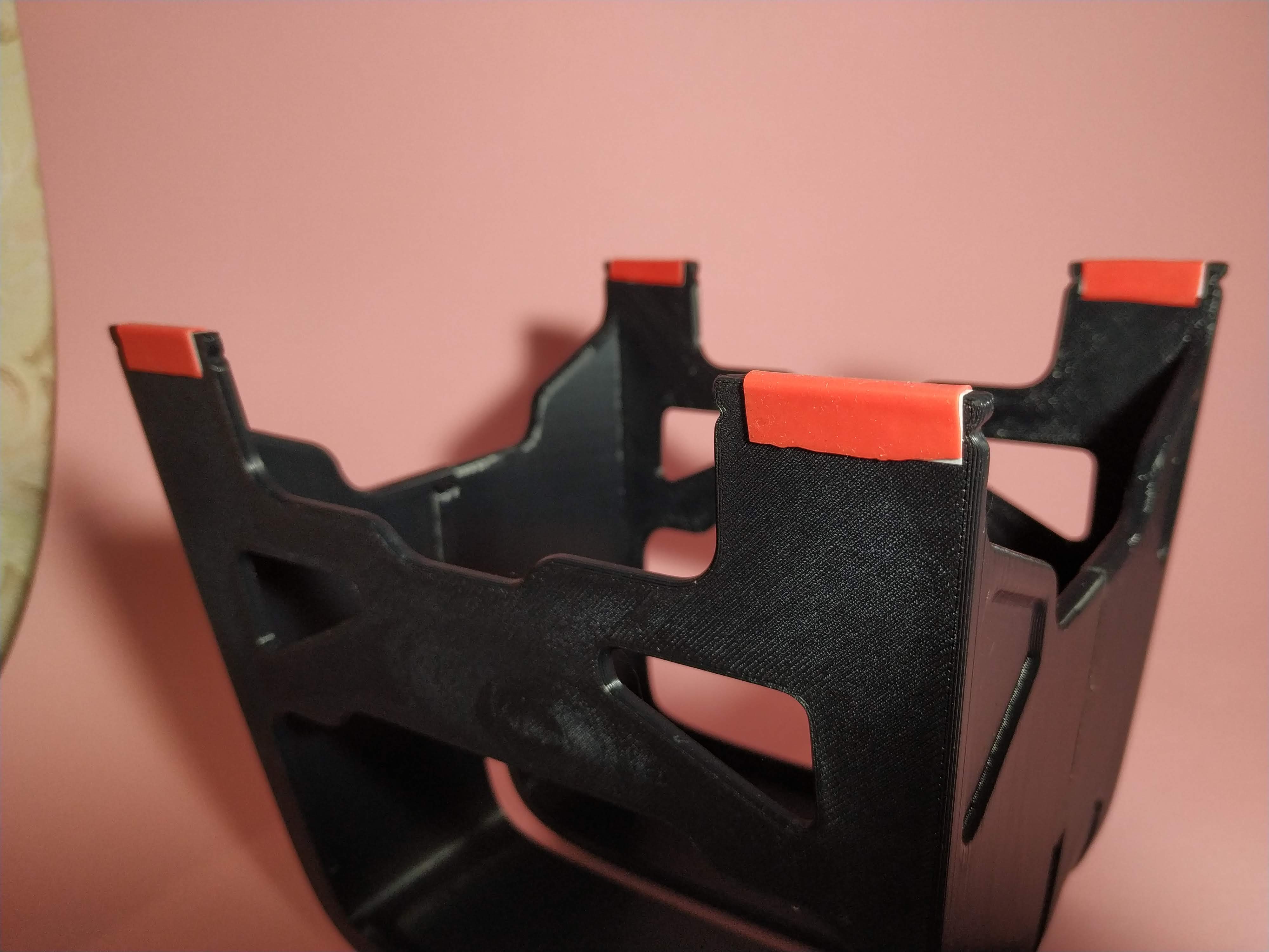 Hiện tại, mẫu này có một vấn đề nhỏ mà tôi muốn sửa và tôi cần một hoặc hai bộ óc thứ hai để giúp tôi. Tôi đã cố định dây cao su bằng băng dính hai mặt và băng keo giấy. Tôi muốn tìm một giải pháp lâu dài hơn, tôi nghĩ có thể thêm một số khe hoặc lỗ để cố định nó. Điều này áp dụng cho cả chân đế và bề mặt trên. Vui lòng cho tôi biết nếu bạn có bất kỳ ý tưởng nào!