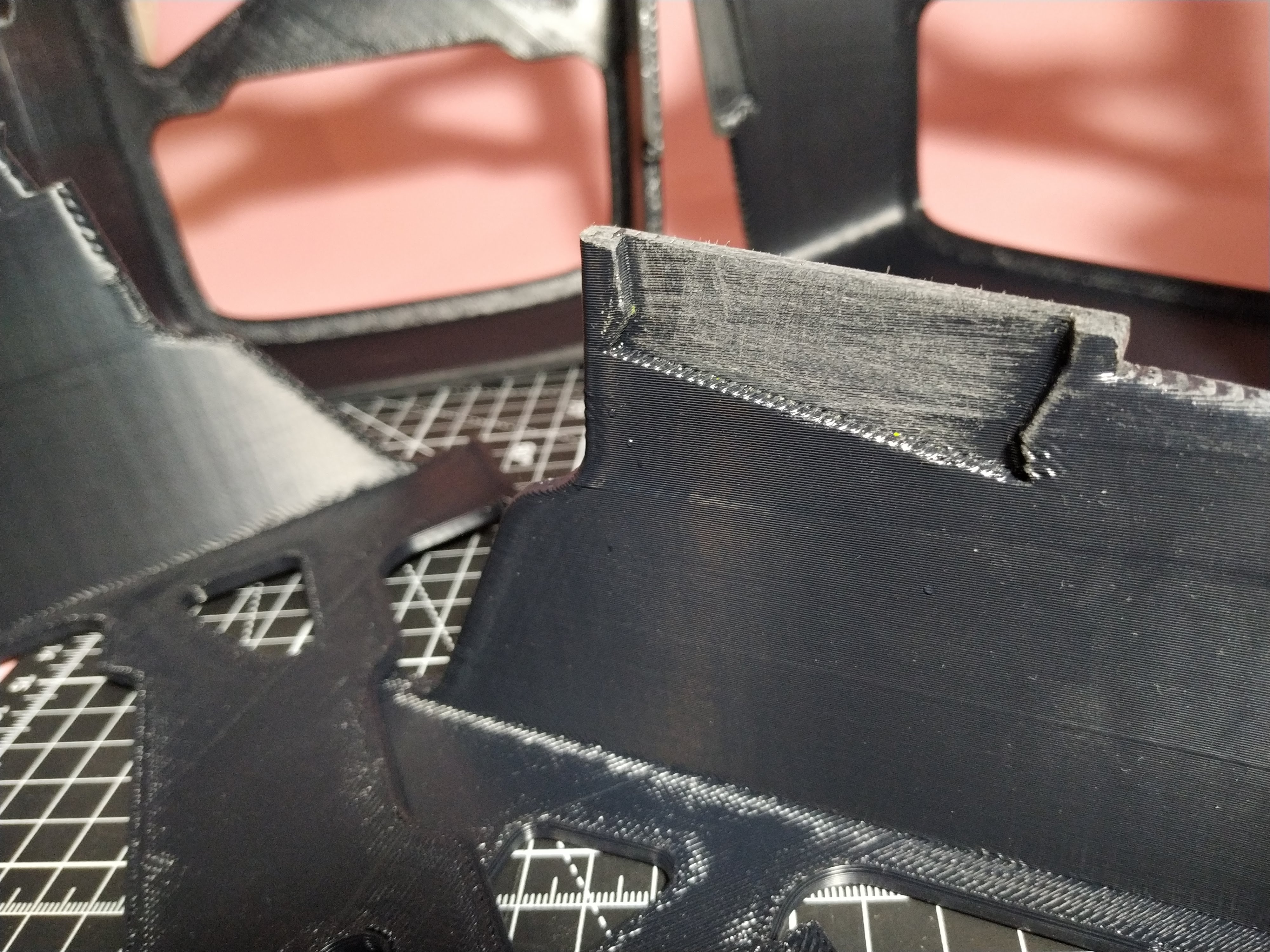 Đối với tệp in gốc của tôi (được gắn nhãn là “don't print”) có một vấn đề: khe cắm cho ván trượt quá sâu, khiến việc mài bén trở nên khó khăn (không đủ khoảng trống cho hướng dẫn mài cạnh đi qua). Tôi đã phải in các miếng đệm bổ sung để nâng ván trượt lên một chút và chúng hoạt động hoàn hảo. Ngoài ra, bề mặt trên trong tệp này có phần nổi (emboss) quá sâu (1.5mm), quá nhiều so với dây kháng lực mỏng (ban đầu tôi định đúc một số miếng chèn silicon cho phần này).