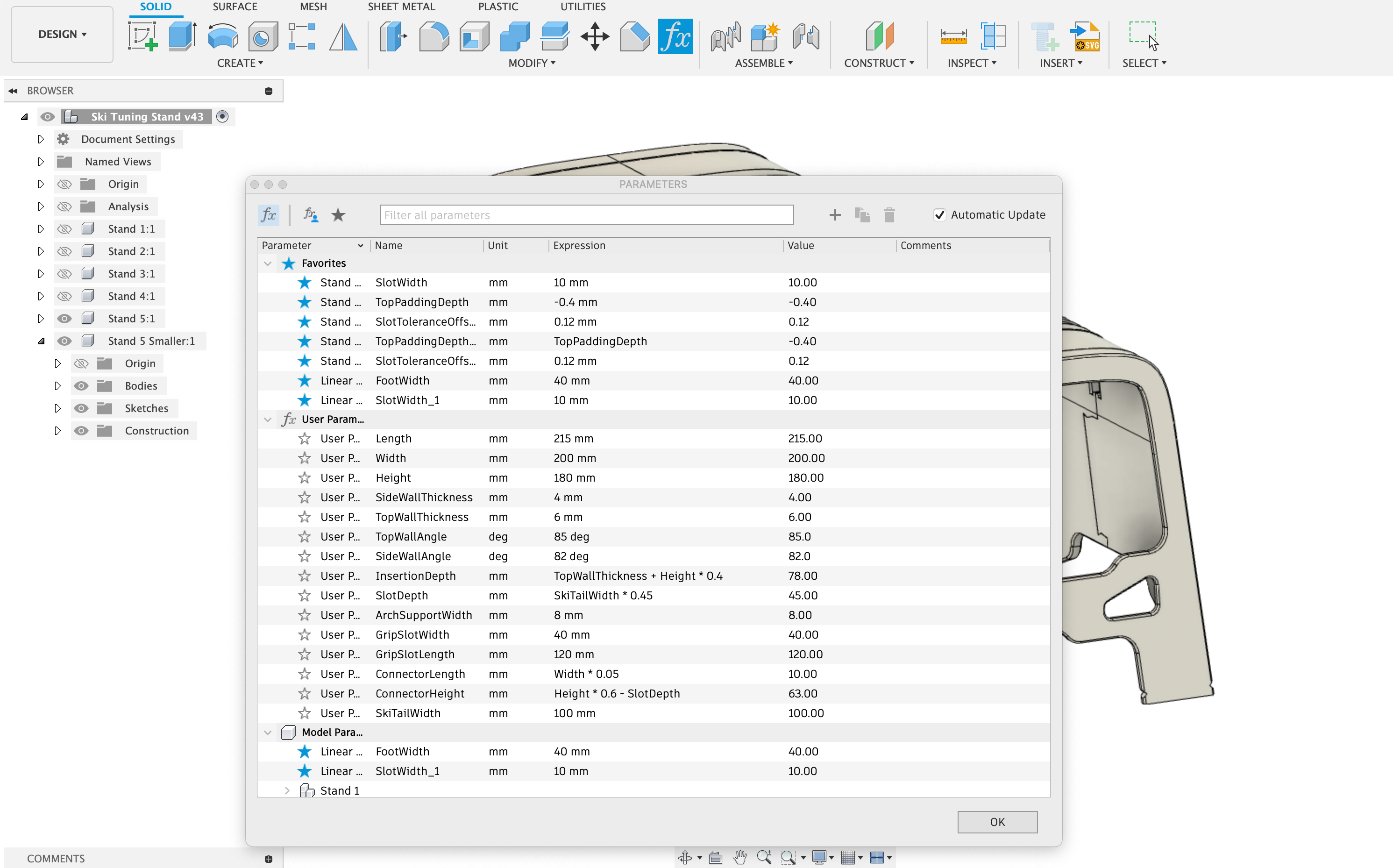 Đối với các vật liệu yếu hơn như PLA, tôi khuyên bạn nên làm dày vỏ, điều này bạn có thể dễ dàng thực hiện nhờ tệp tham số có sẵn cho Fusion360. Bạn cũng có thể thay đổi kích thước giá đỡ lớn hơn hoặc nhỏ hơn tùy thuộc vào kích thước bàn in của bạn.