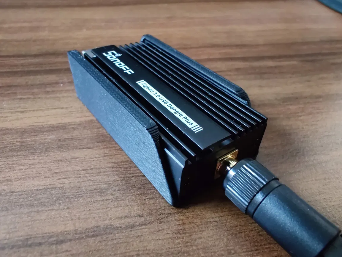 Đế giữ cho Sonoff Zigbee 3.0 USB Dongle Plus-P/-E, có thêm lỗ để bắt vít lên kệ. Bản remix này đã cải thiện các cục chặn ma sát, giữ dongle chắc chắn hơn. Phù hợp cho cả hai phiên bản P và E của dongle.