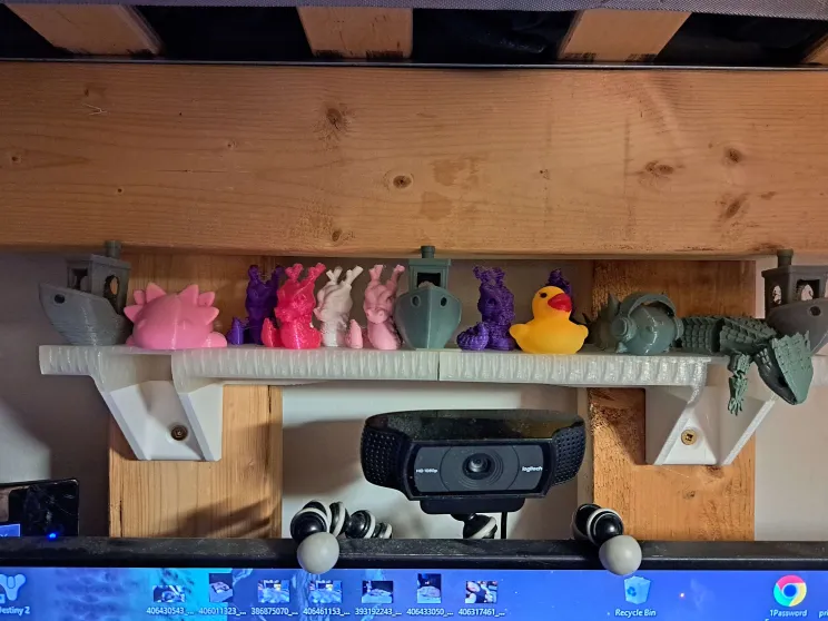Cái kệ modun nhỏ tui làm để đựng mấy món đồ in 3D với mấy thứ linh tinh để trên bàn làm việc. Mấy cái khớp nối có thể dùng để cố định các bộ phận lại với nhau, còn bản thân cái kệ thì có thể lật và nối ở hai đầu.