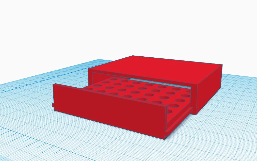 Hộp đựng cho đầu phun 1.75mm tiêu chuẩn. Hộp này có thể chứa tới 30 cái đầu phun tiêu chuẩn (M6, cao 13mm). Không cần hỗ trợ, brim hay raft.