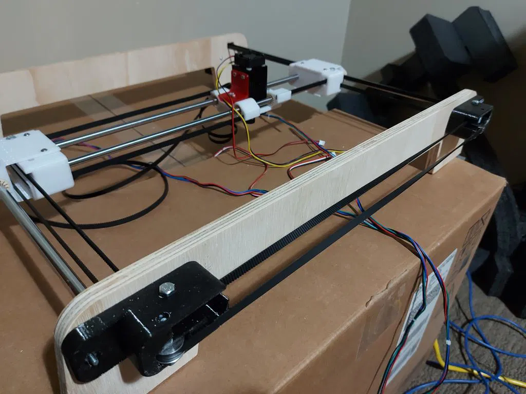 Đây là phiên bản máy khắc laser CoreXY của tôi, vẫn đang trong quá trình hoàn thiện. Bài viết mô tả chi tiết các bộ phận cần thiết (BOM), cách lắp ráp và cài đặt in, kèm theo một số lưu ý quan trọng về việc sử dụng các bộ phận in sẵn.