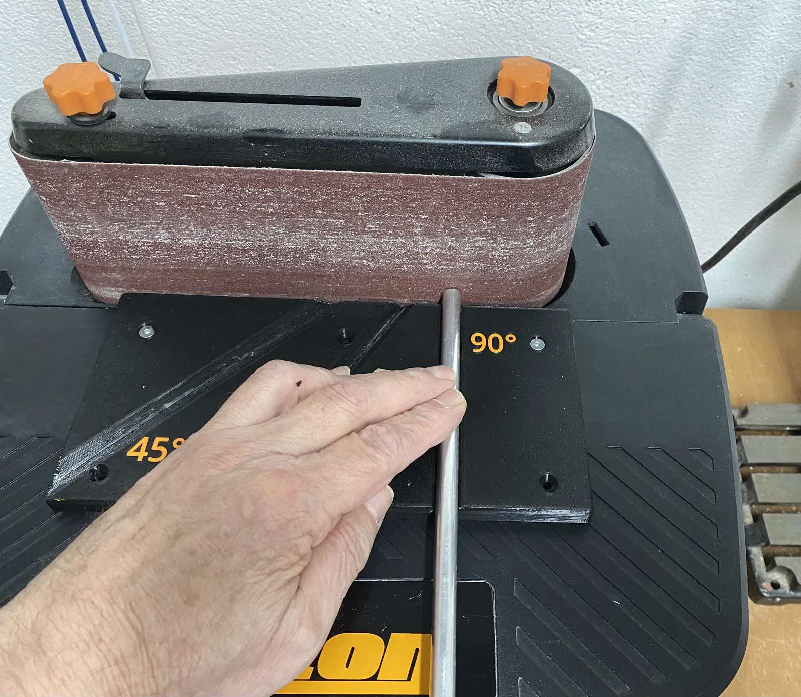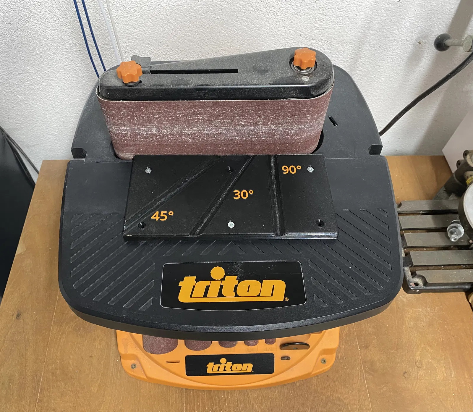 Cái thước này giúp tăng độ chính xác cho máy chà nhám băng Triton, có đế làm việc nhỏ với rãnh chia độ 90°, 45° và 30°. Đế bằng nhôm, dễ dàng gắn và có thể in đa màu tùy chọn.