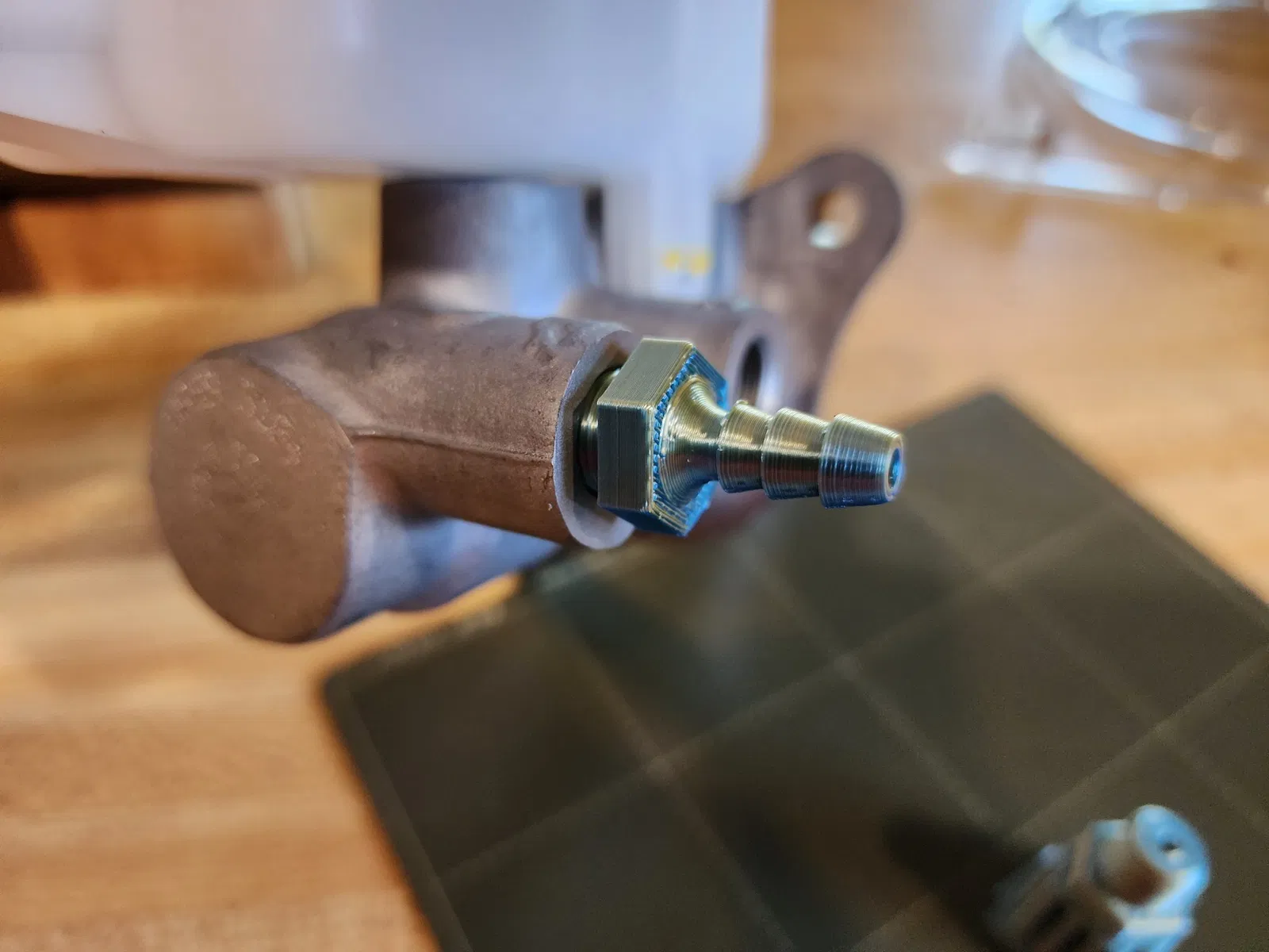 Remix của mô hình được thực hiện bởi @InducedRug_217669. Tôi đã rút ngắn phần mở rộng ở cuối các sợi để đảm bảo đủ sợi có thể tham gia hoàn toàn trước khi tiếp xúc với phần phình ra, và đã làm lớn hơn và thêm các rãnh vào bộ chuyển đổi ống. Vật liệu dày hơn trên đầu nối làm cho nó chắc chắn hơn một chút. Đai ốc sử dụng cờ lê 16mm. Đầu nối chấp nhận ống linh hoạt có đường kính trong 6-7mm hoặc ¼". In bằng PLA, độ cao lớp .15mm sử dụng cài đặt “chất lượng”, tôi đã in một cặp trong 1 giờ 20 phút trên Mini+. Cần hỗ trợ nhưng in đẹp mắt sử dụng tính năng sơn trên của eSlicer.