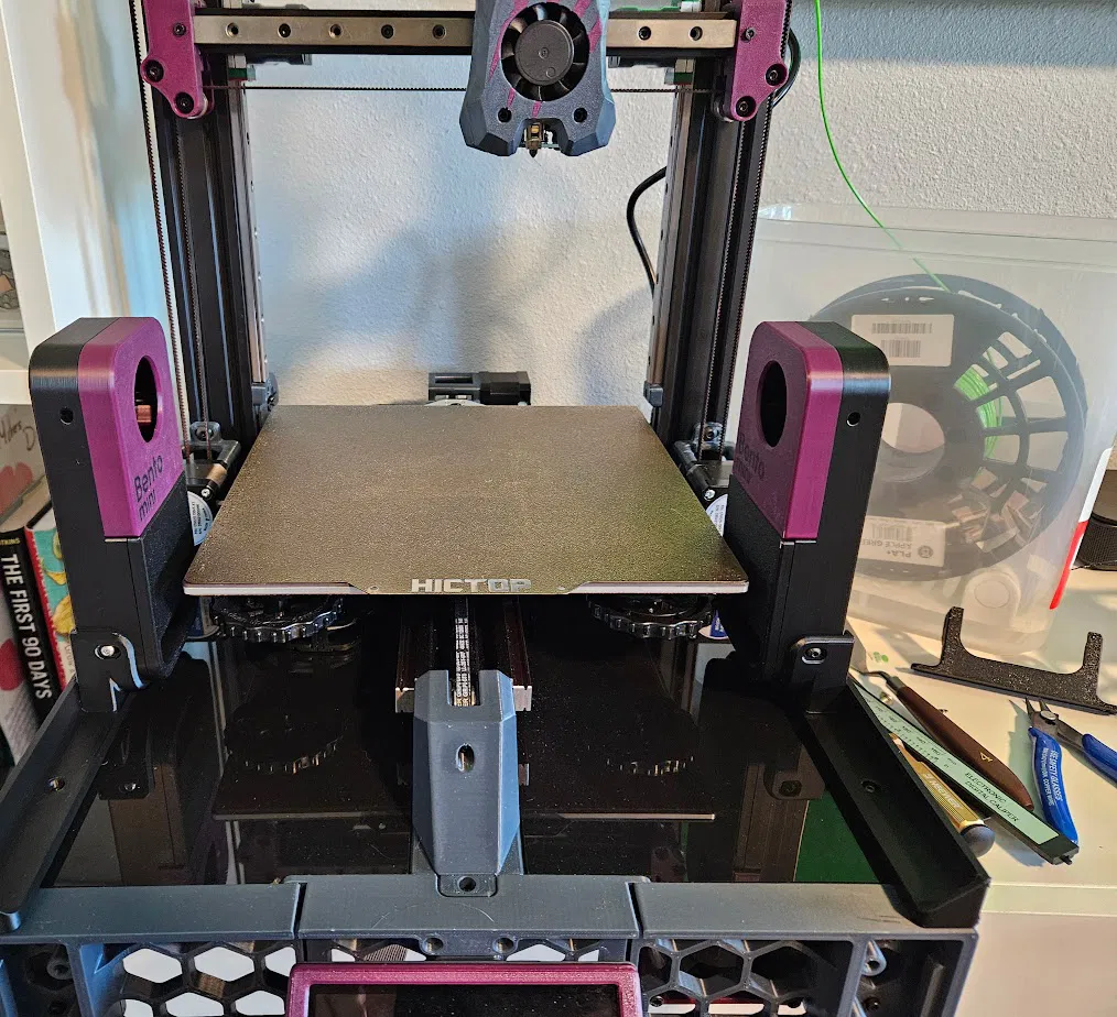 Tích hợp khay đựng Bento Mini vào dự án Enderwire bằng cách sử dụng kẹp bảng điều khiển phía trước. Sản phẩm này kết nối bằng ốc M5 và M3, đồng thời hỗ trợ các tấm bên của thùng máy.
