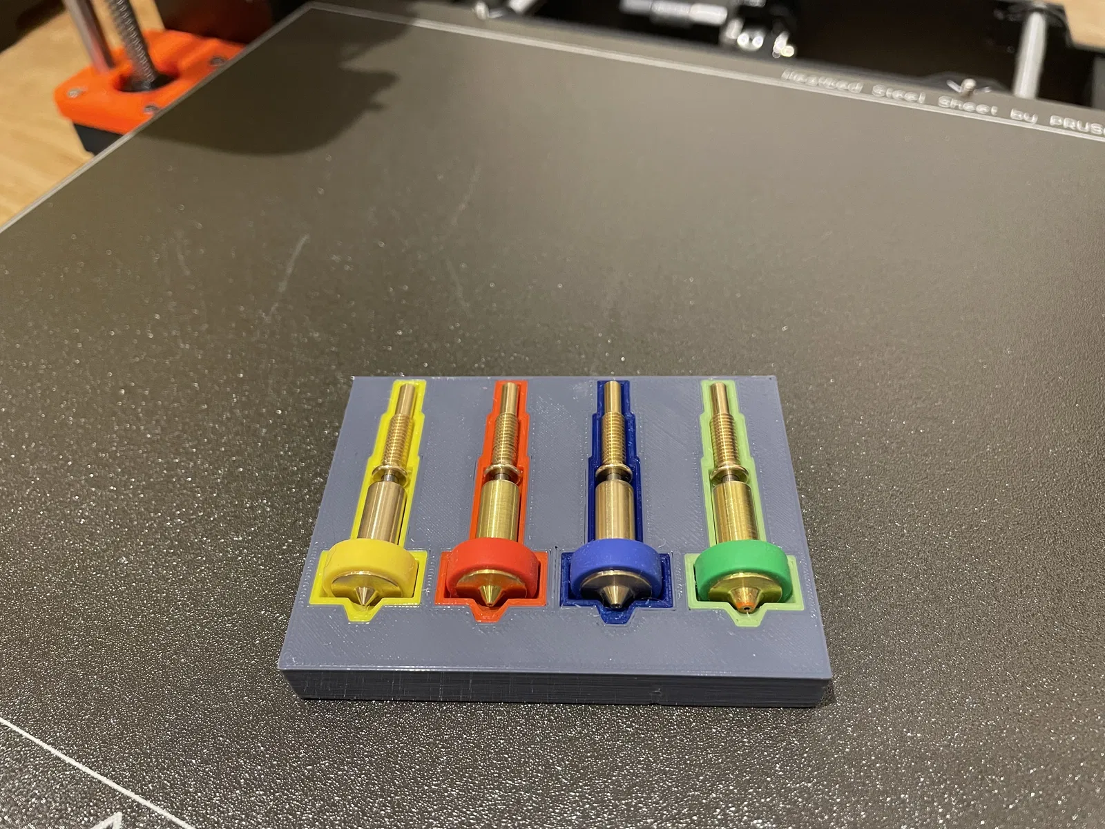 Tui mới tậu cái E3D Revo Nozzle System nè, mê nó lắm luôn, highly recommend nha. Tui làm cái case này để đựng nozzle lúc không xài, khỏi mất. In bằng PLA với 10% infill, hết khoảng 6.5 tiếng. Link project đây, ai muốn remix thì lấy nha.