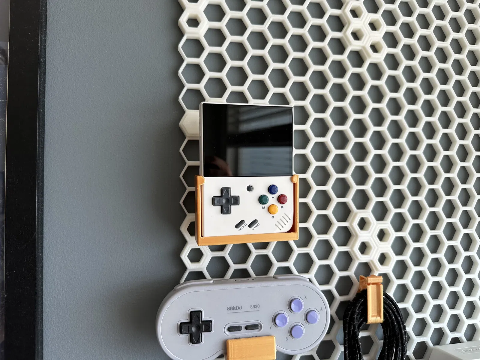 Một gắn kết Miyoo Mini Plus cho hệ thống tường lưu trữ tổ ong. Mới, mô hình gốc trong mô tả.