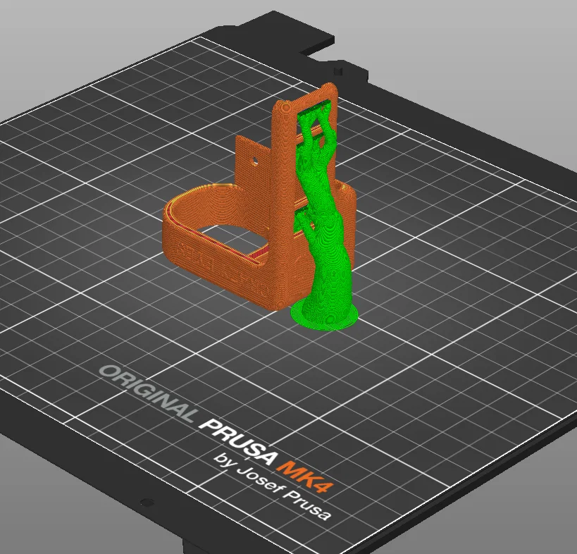 Bao gồm các tệp STL và STEP. Khuyến nghị dùng PETG với 3 lớp vỏ, đường nối ở phía sau, 15% mật độ ruột. Hỗ trợ không thực sự cần thiết nhưng bạn có thể muốn thêm một số hỗ trợ hữu cơ như trong hình.