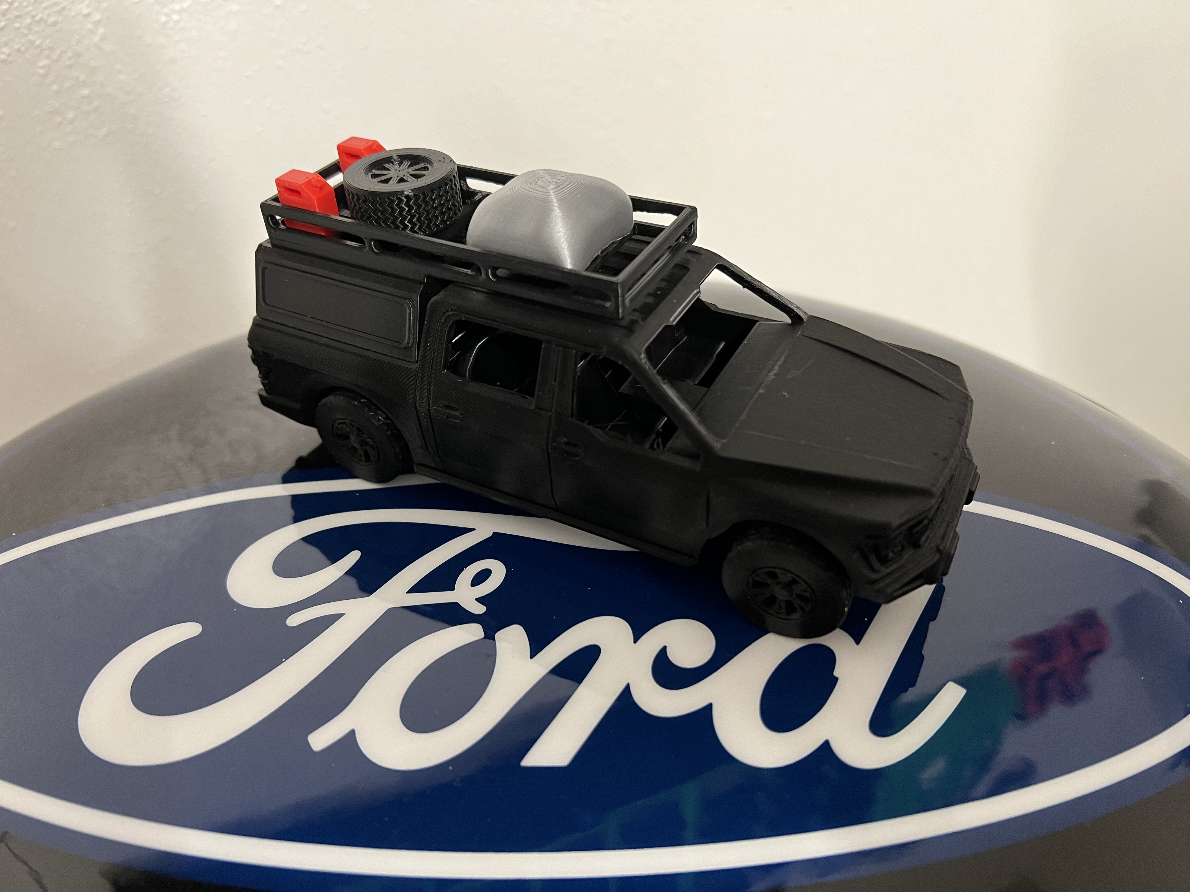 Trang bị cho chiếc Raptor của bạn sẵn sàng cho chuyến đi offroad! Bộ sản phẩm bao gồm canopy, giá đỡ, bình xăng và lốp dự phòng, có thể in liền hoặc tách rời.