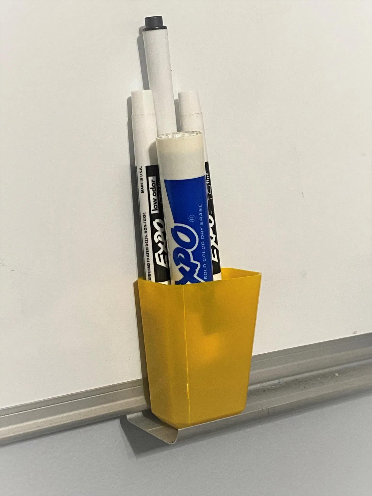Cái ly nhỏ xinh để đựng bút lông bảng của bạn. Được thiết kế để xài nam châm dày ¾" x 3/16". Nếu nam châm của bạn không đủ mạnh, bạn cứ việc để nó dựa vào cái kệ đựng đồ xóa bảng nha.