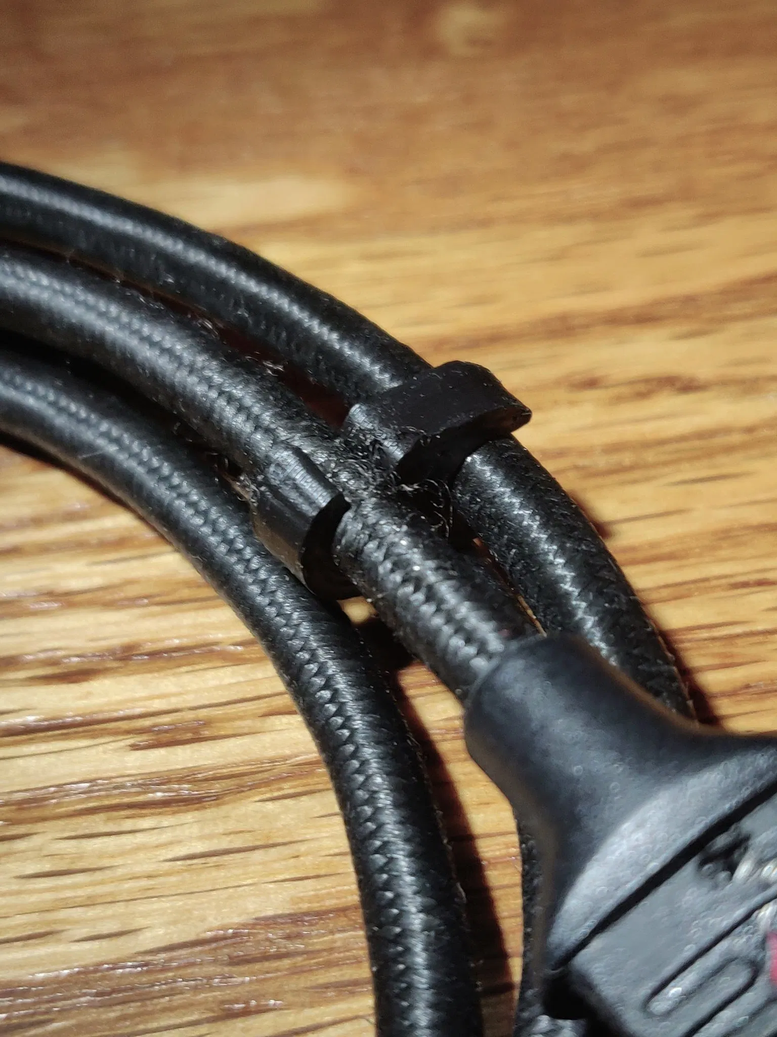 Mặt móc vuông góc được thiết kế để giữ trên cáp (nó được thiết kế để khó tháo ra và lắp vào, hãy ấn mạnh lên bề mặt cứng trong khi giữ cáp!) trong khi mặt kia dễ dàng kết nối và ngắt kết nối.