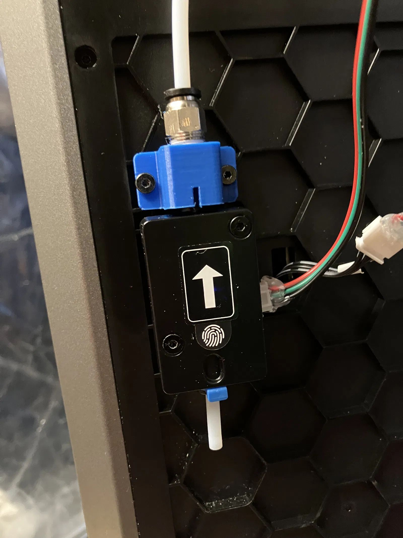 Cái đế của K1 của mình phía trên cảm biến dây tóc có xu hướng không cho ống PTFE vào sâu trong cảm biến báo hết dây tóc. Khi không được đặt sát, việc luồn dây tóc vào sẽ gặp vấn đề.