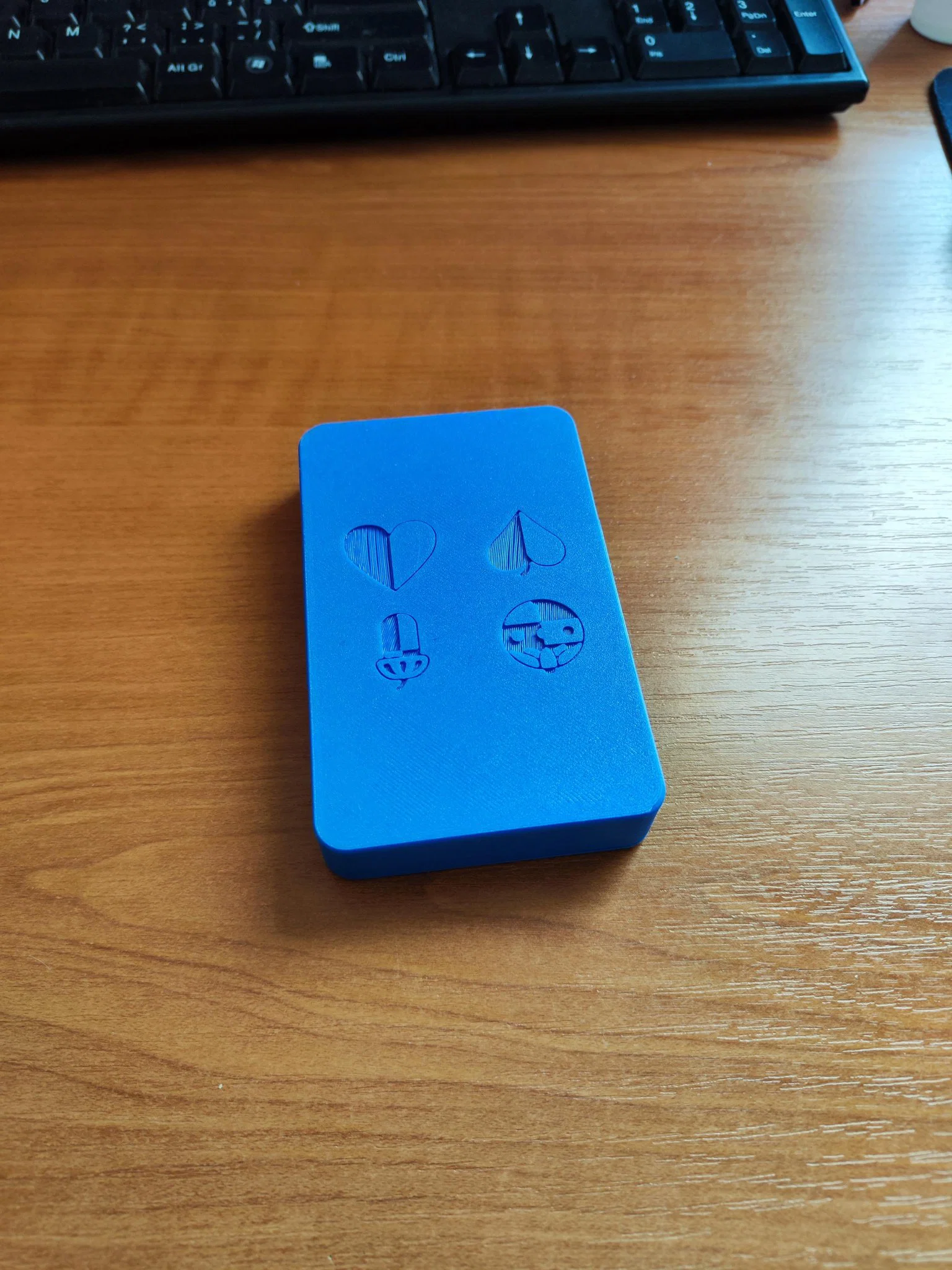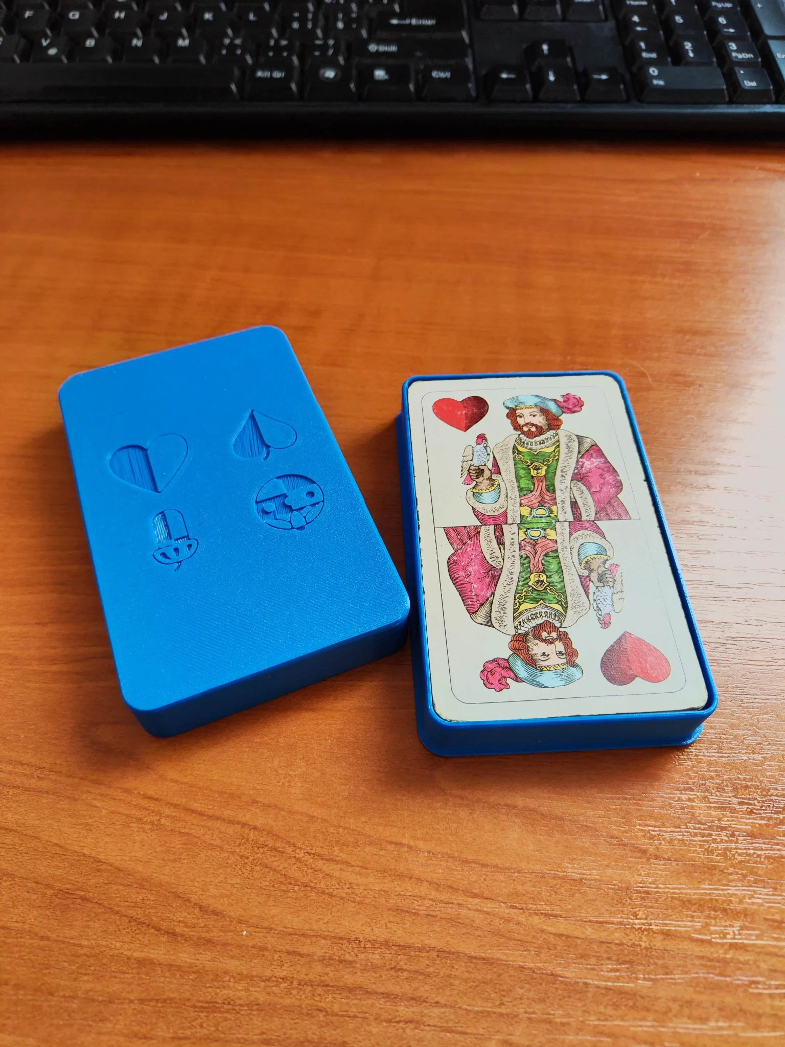 Bộ chứa đơn giản cho bài prší với họa tiết prší ở một bên. không gian bên trong cho các lá bài là (mm) 61x101x13.5.