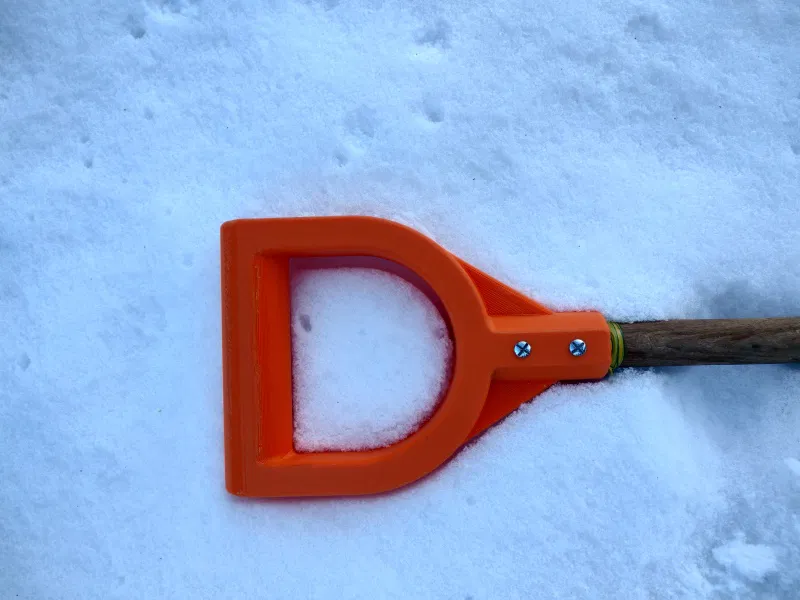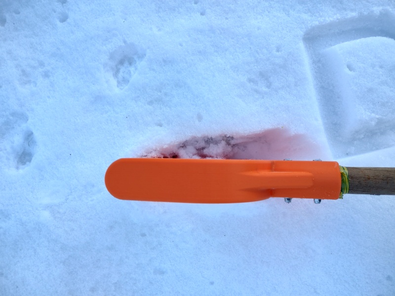 Tay cầm thay thế cho xẻng xúc tuyết, vừa cho thanh 30mm. Hơi to nhưng đủ cho tay mang găng tay trượt tuyết. Khuyến khích dùng sợi nhựa chịu va đập, cần 2 vít M4x45mm.