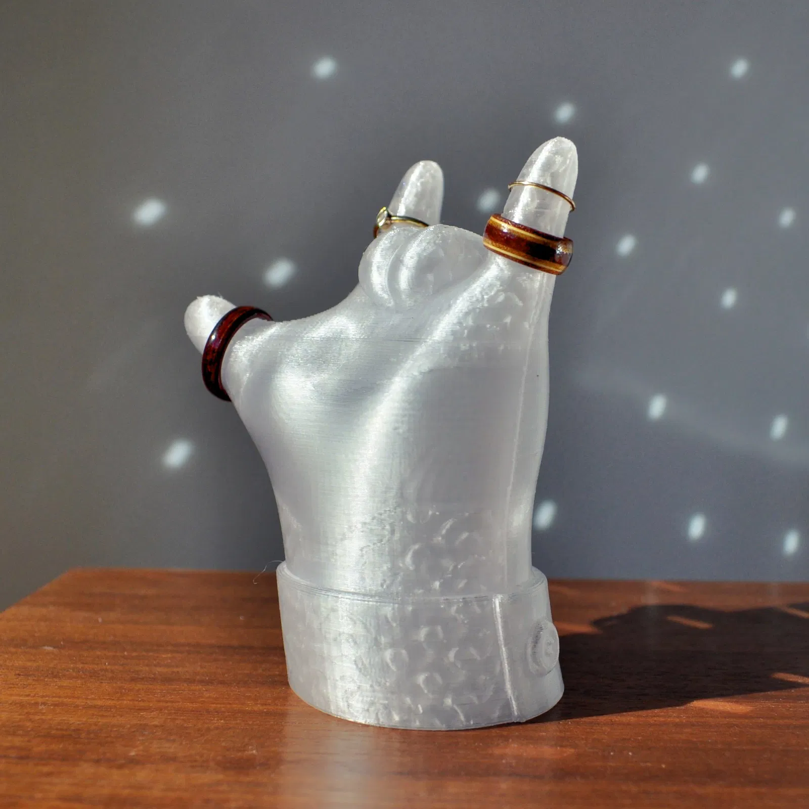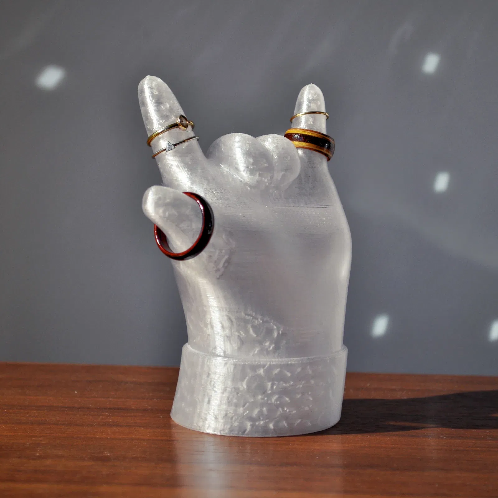 Một mẫu tay cách điệu siêu cưng, được tạo ra để giữ nhẫn và thể hiện tình yêu qua Ngôn ngữ Ký hiệu Mỹ (ASL). Có khoang chứa bí mật và in không cần hỗ trợ.