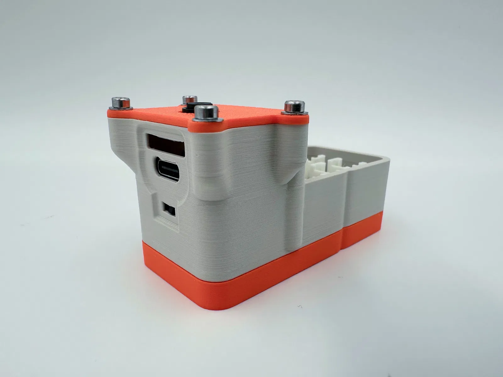 Nếu bạn tự cấu hình bản in, đó là một bản in dễ dàng với đầu phun 0.4. Thân chính cần hỗ trợ cây lai (hybrid tree supports) để hỗ trợ khay và các lỗ cắm thẻ nhớ SD/công tắc/USB-C cho biến thể "sense". Tui đã in cái trên ở độ cao lớp 0.16 nên nó ra mịn.