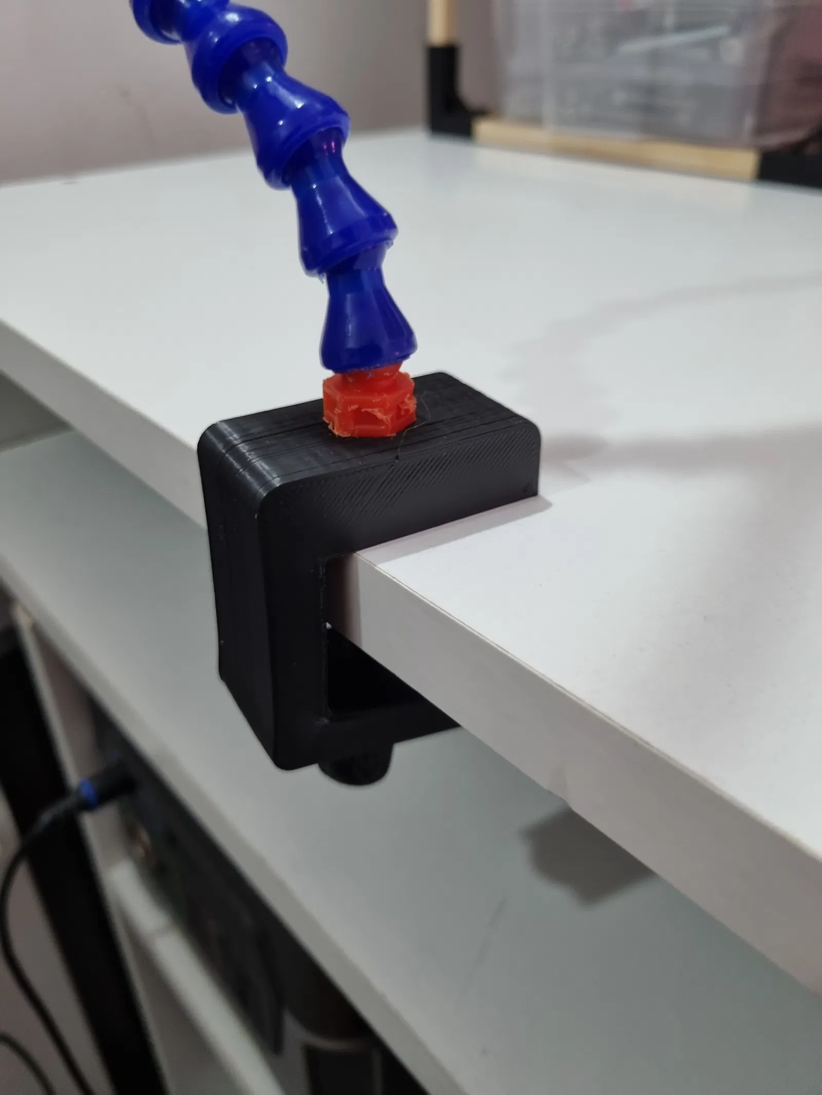 Một kẹp C đơn giản dùng để kẹp loc-line vào bàn làm việc. Phiên bản thu nhỏ của Đèn làm việc LED của Adam Savage, sử dụng ½ Loc-Line và đèn LED chạy bằng pin.