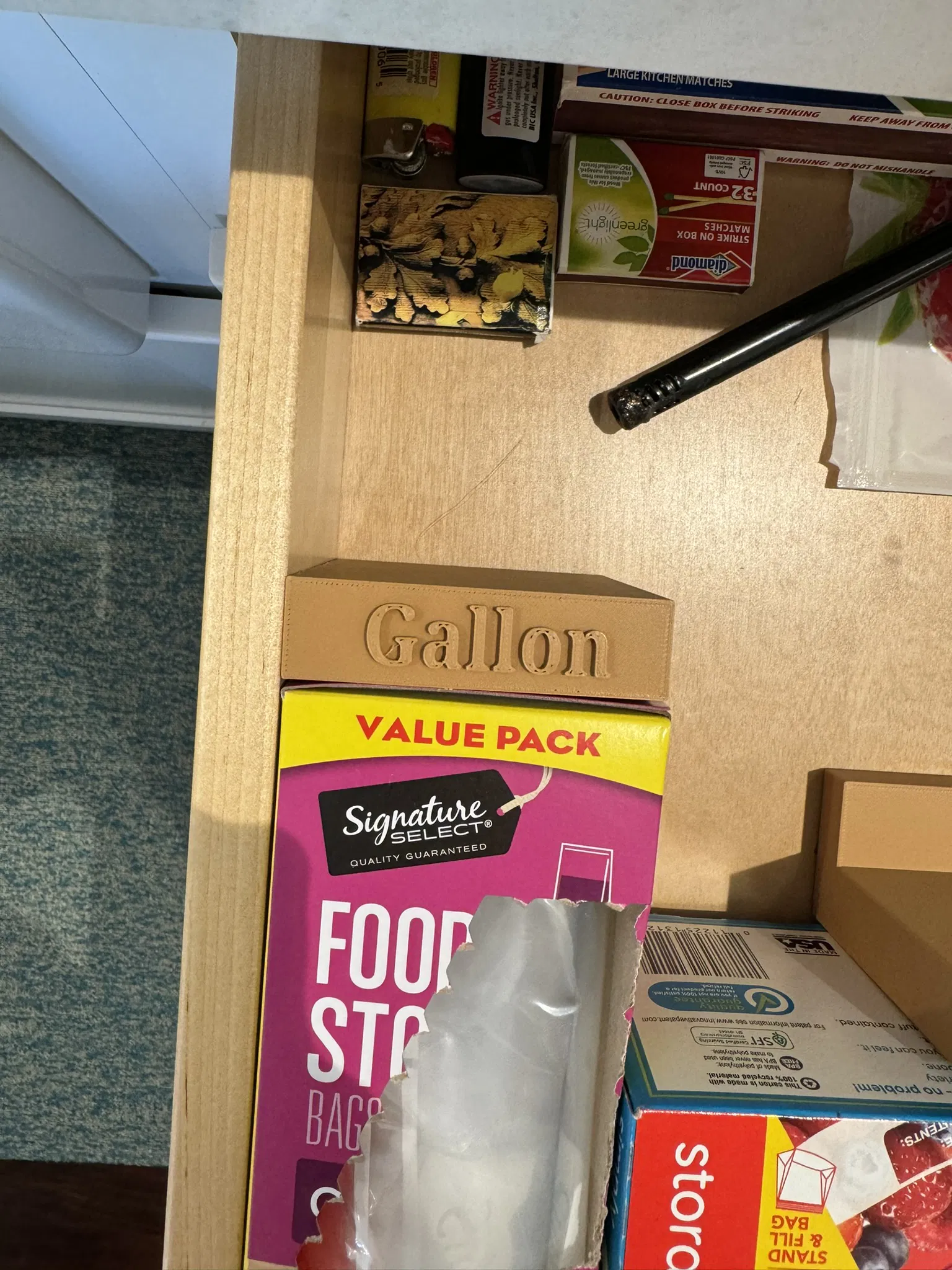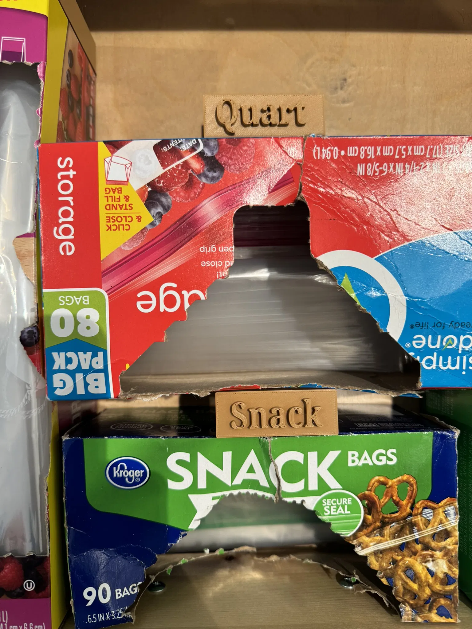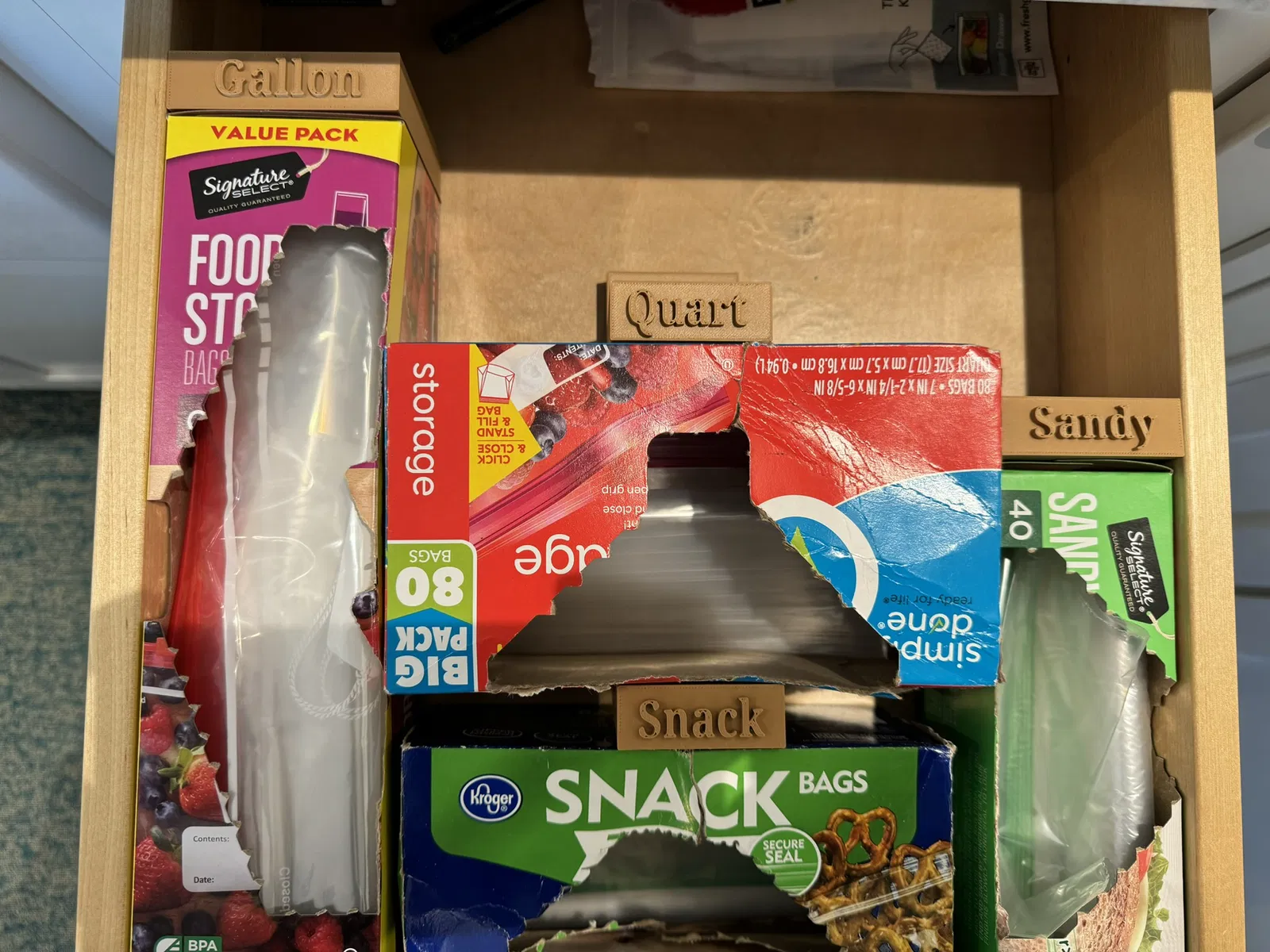 Giữ cho hộp đựng túi ni lông không bị xê dịch khi mở và đóng ngăn kéo. Có các kích cỡ Quart, Gallon, Snack và Sandwich. In dễ dàng với mọi loại nhựa.