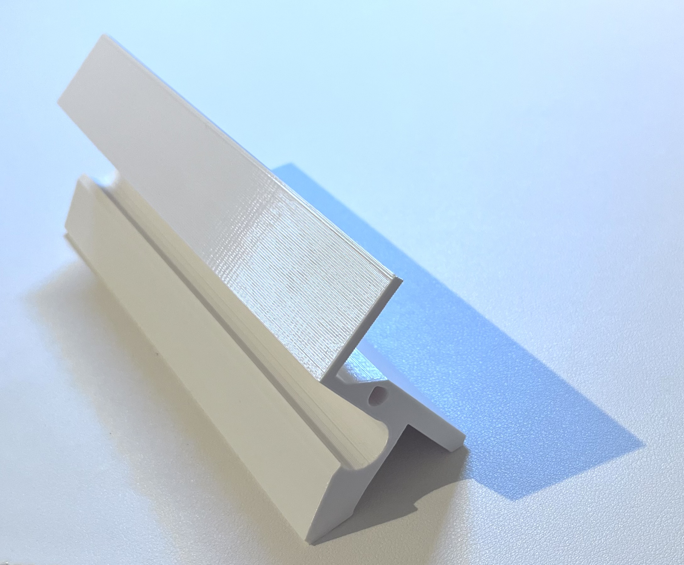 Phần in 3D này, kẹp vào kệ, sẽ giữ rổ cố định.