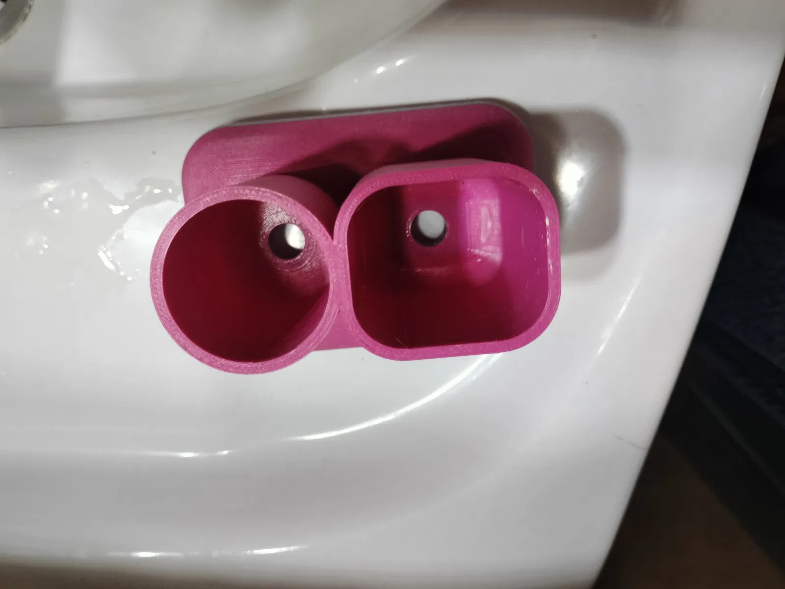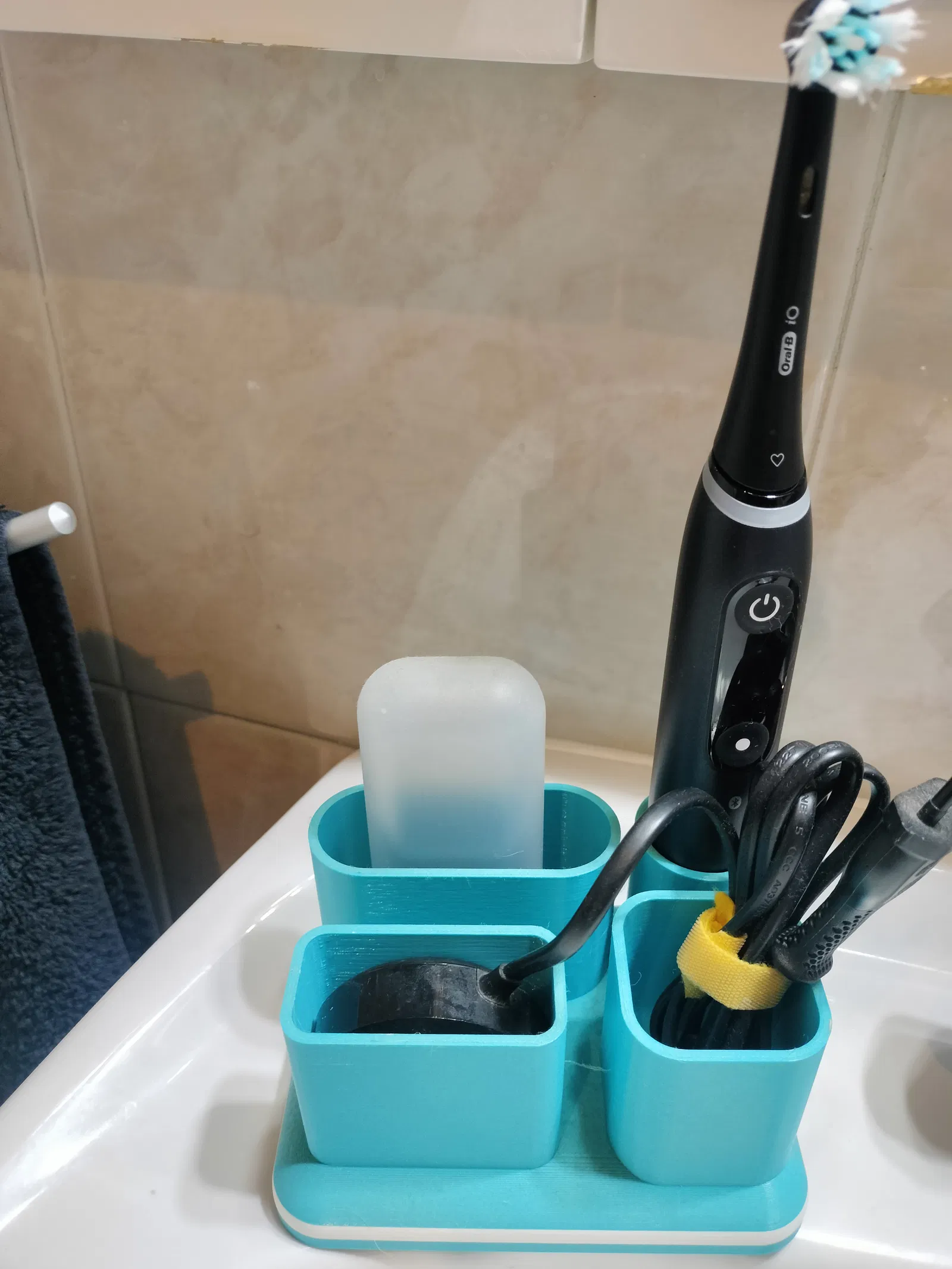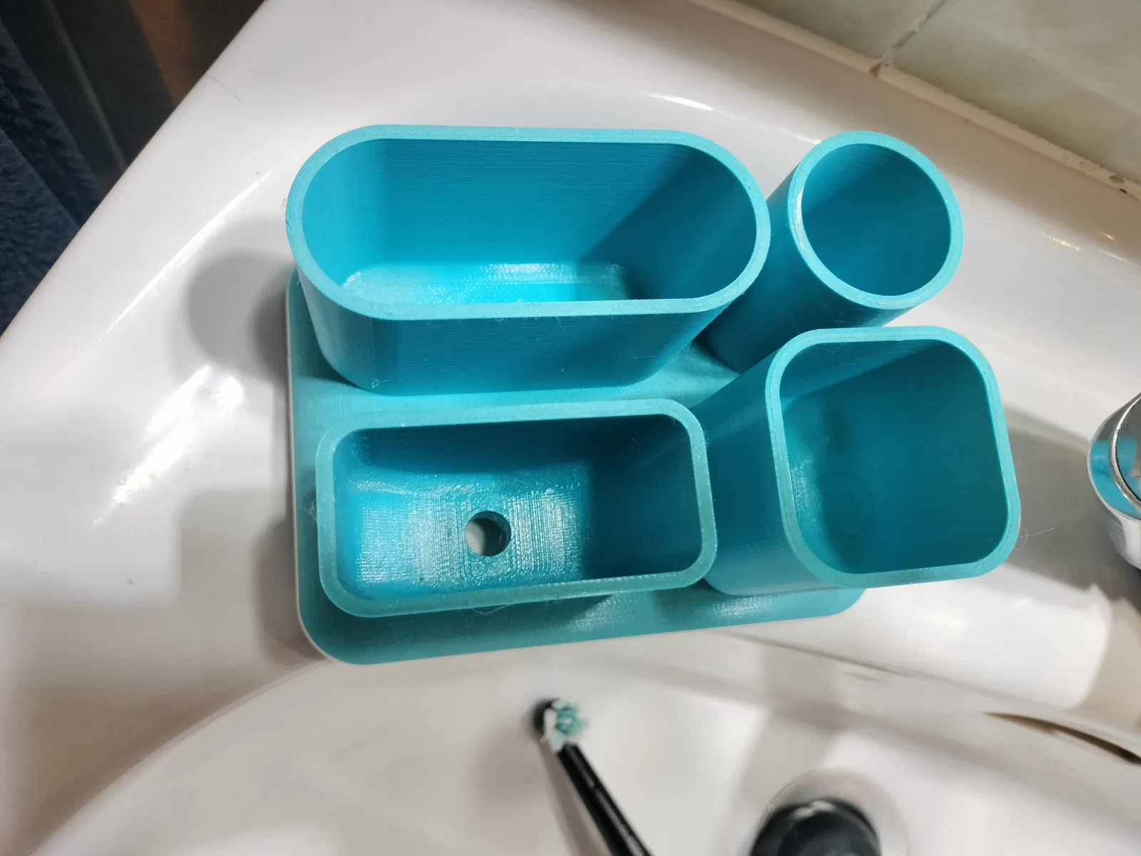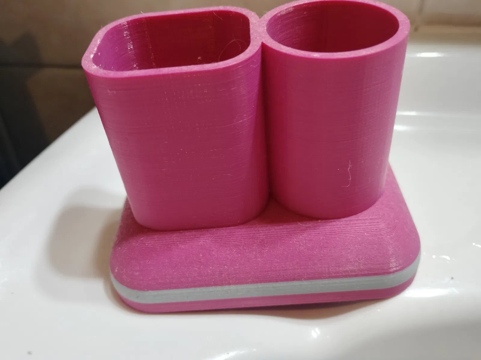 Giá đỡ cực kỳ vững chắc, đế rộng cho bàn chải đánh răng hoặc các vật dụng nhỏ khác trong phòng tắm. Có lỗ thoát nước dưới đáy để tránh đọng nước và cặn bẩn. Có thể in bằng PLA hoặc PETG.
