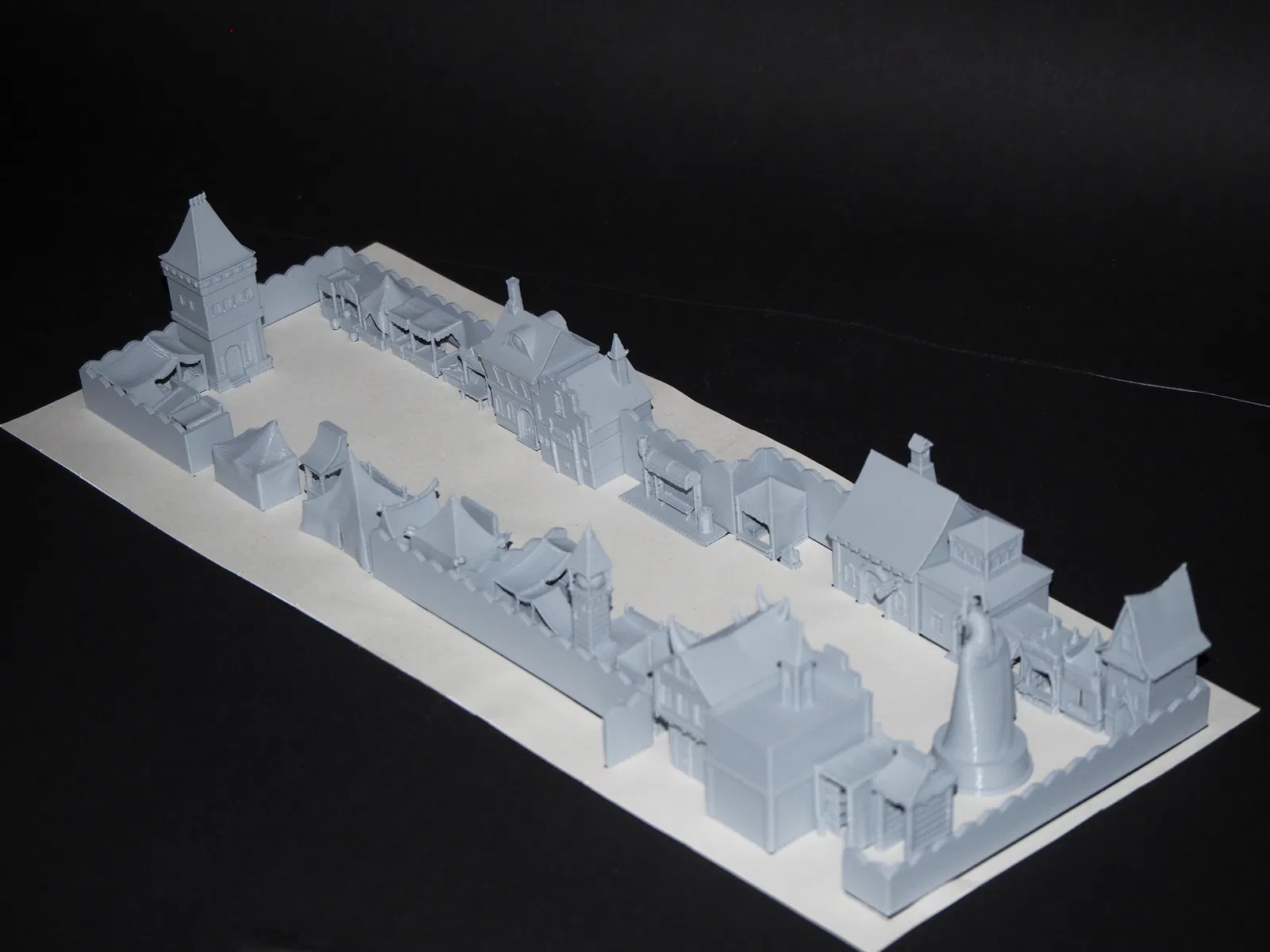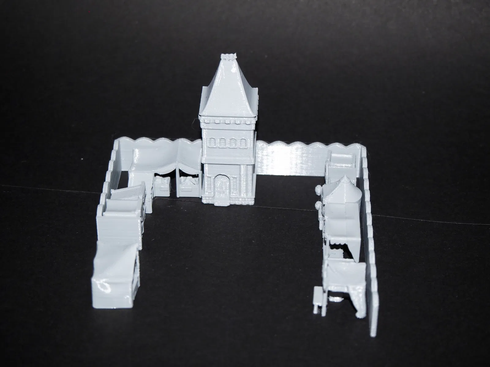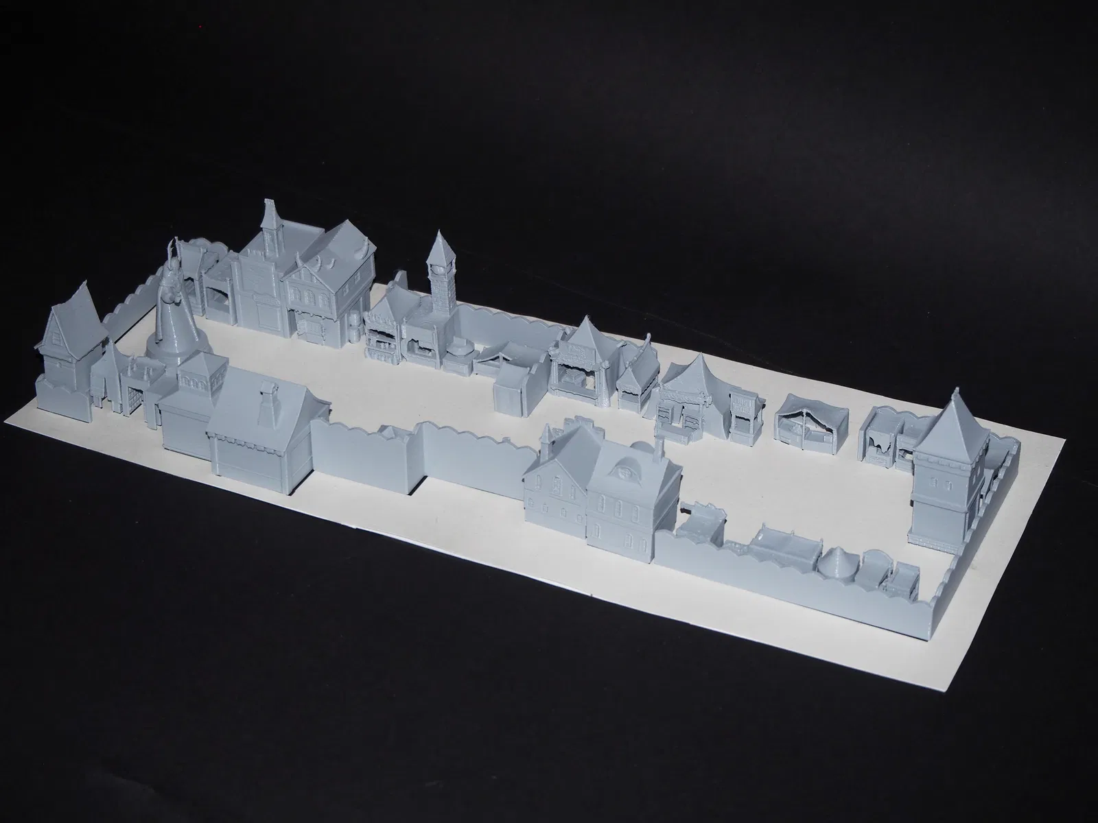 Mô hình này bao gồm 10 quầy hàng, 1 tòa nhà và bức tường xung quanh.