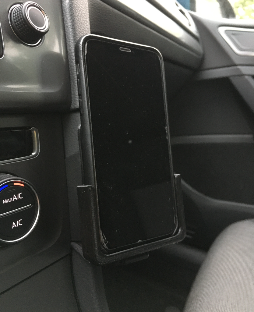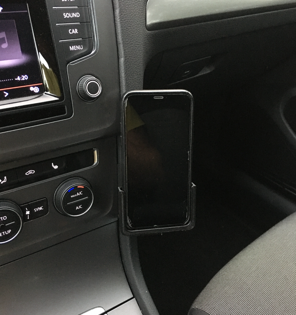Đế giữ iPhone X + ốp da Apple zin, thiết kế chắc chắn, có chỗ chừa dây cáp, chống trầy xước ốp da. Thích hợp gắn xe VW Passat B6, VW Golf 7. Có thể kết hợp thêm VW UHV Adaptor.