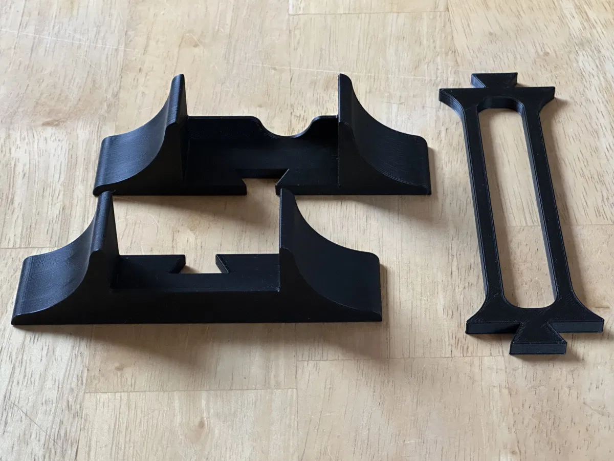 Tôi thiết kế các mẫu 3D của chân đế bằng Shapr3D, cắt lát bằng PrusaSlicer và in bằng PLA trên máy Prusa i3 Mk3 của tôi. Không cần hỗ trợ. Nên đặt các ngàm nằm nghiêng trong phần mềm slicer của bạn trước khi in. Bạn có thể đặt chế độ "0.30 mm DRAFT", chất lượng vẫn ổn hết.