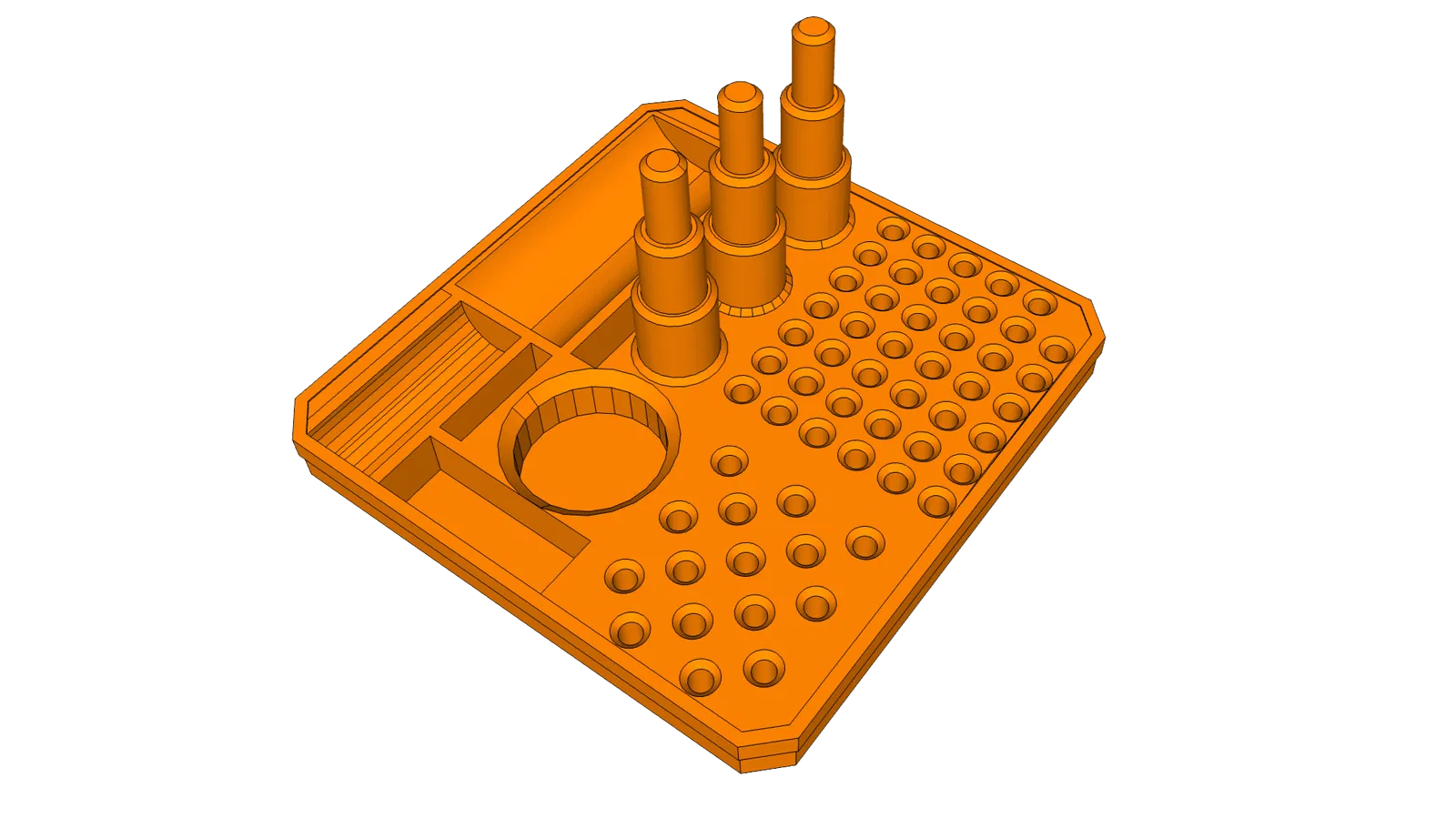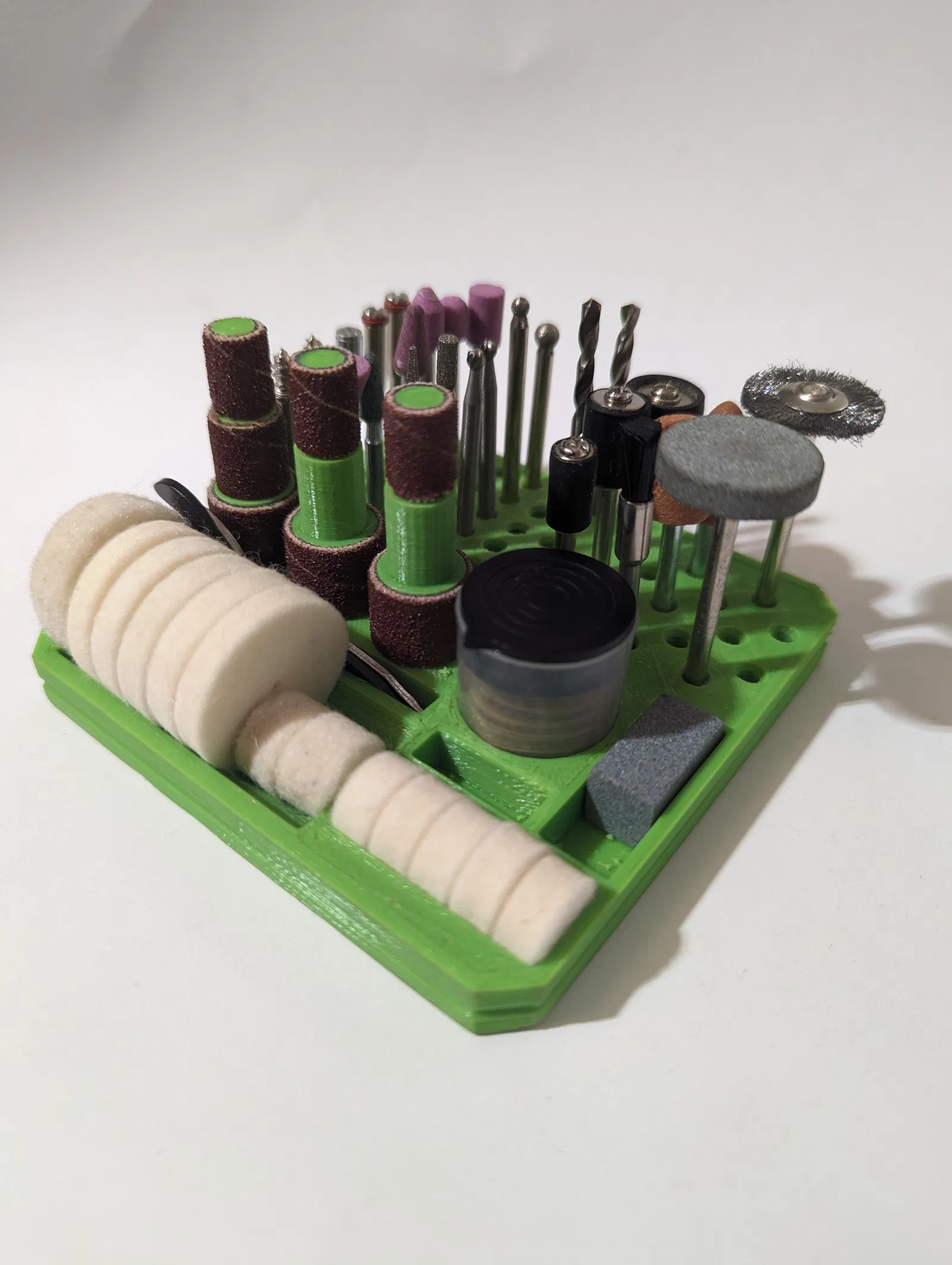 Bộ lưu trữ phụ kiện Dremel đa năng cho khay MultiBoard, có nhiều kích cỡ lỗ chứa khác nhau. Dễ dàng in ấn mà không cần support, hoàn hảo để tổ chức các phụ kiện Dremel của bạn.