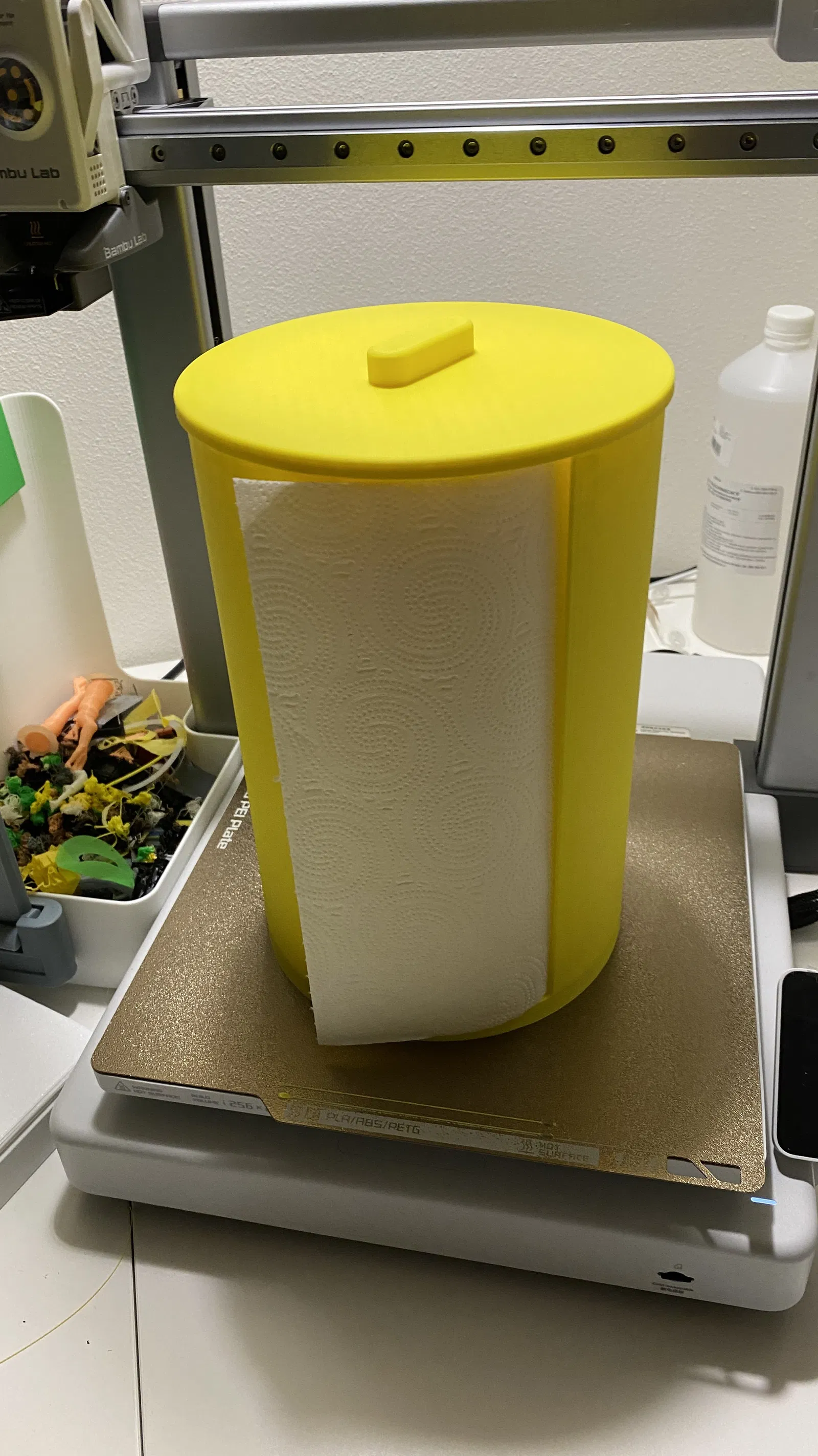 Tui cần cái chỗ để giấy rút ăn bếp nè. Mà nhà tui có con mèo nó hong có nghe lời, cứ hay leo lên đồ, nên tui phải làm cái hộp kín cho cái cuộn giấy rút.