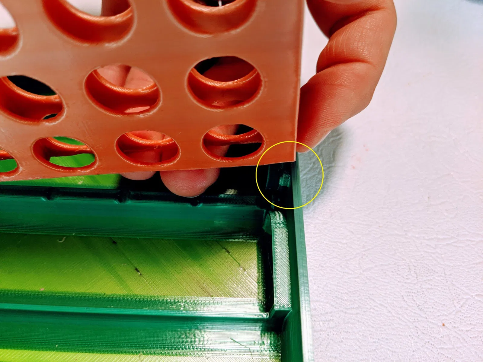Bảng trò chơi được in đứng. Vì vậy, nếu bạn đang sử dụng một máy in có giường nghiêng, bạn cần phải làm chậm quá trình in đủ để tránh sự cố, hoặc bạn sẽ cần một viền cho phần đó (có thể cả hai).