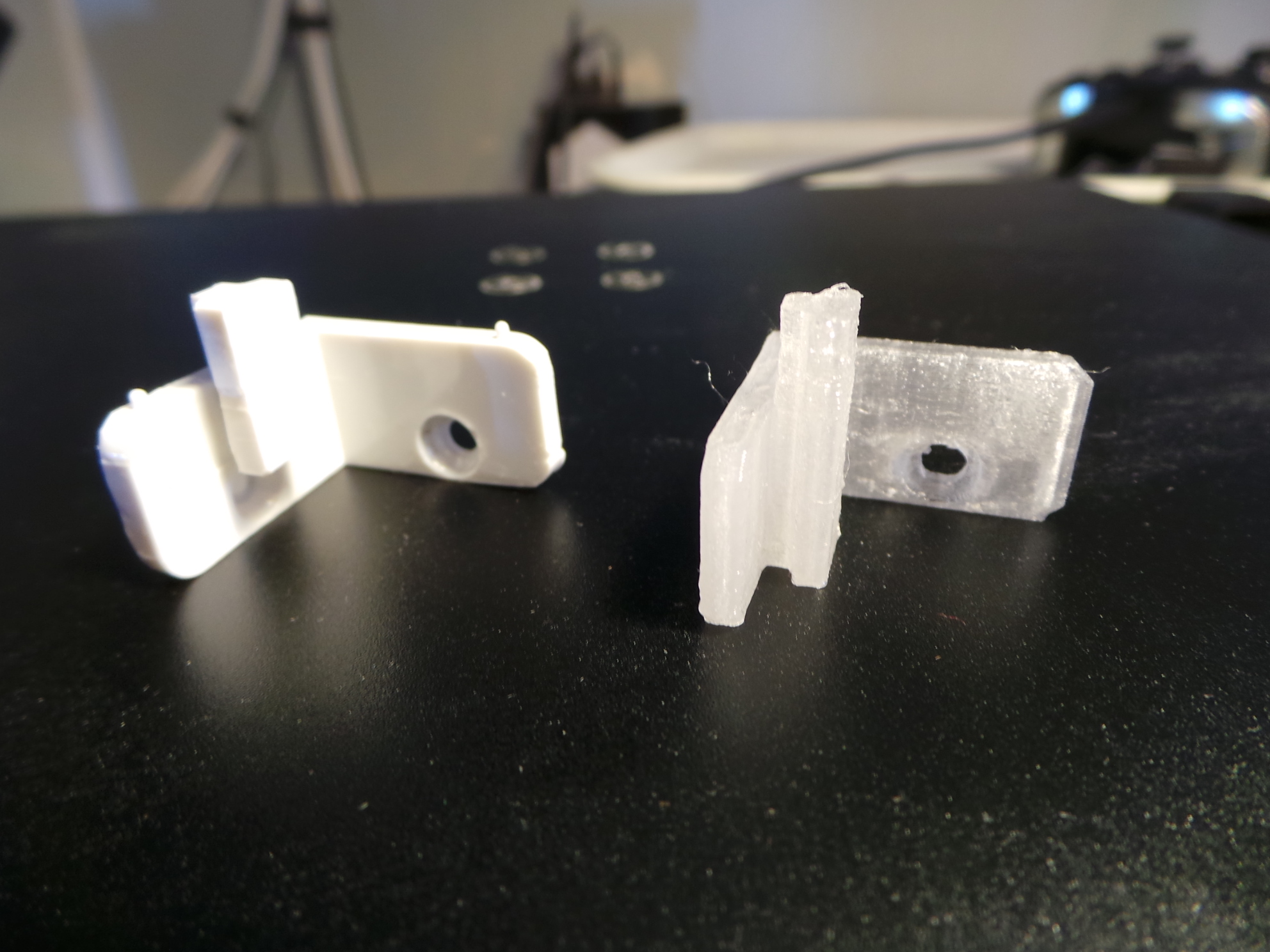 - Phiên bản cực kỳ thân thiện với máy in. Thêm khoảng hở xung quanh các bộ phận trượt vào bộ đèn và đệm cạnh dưới lỗ vít bằng vật liệu bổ sung (nó rất mỏng và thực tế là nguyên nhân khiến bộ phận ban đầu bị vỡ). Điều này phải đánh đổi bằng việc giá đỡ nhô ra xa bộ đèn hơn một chút.