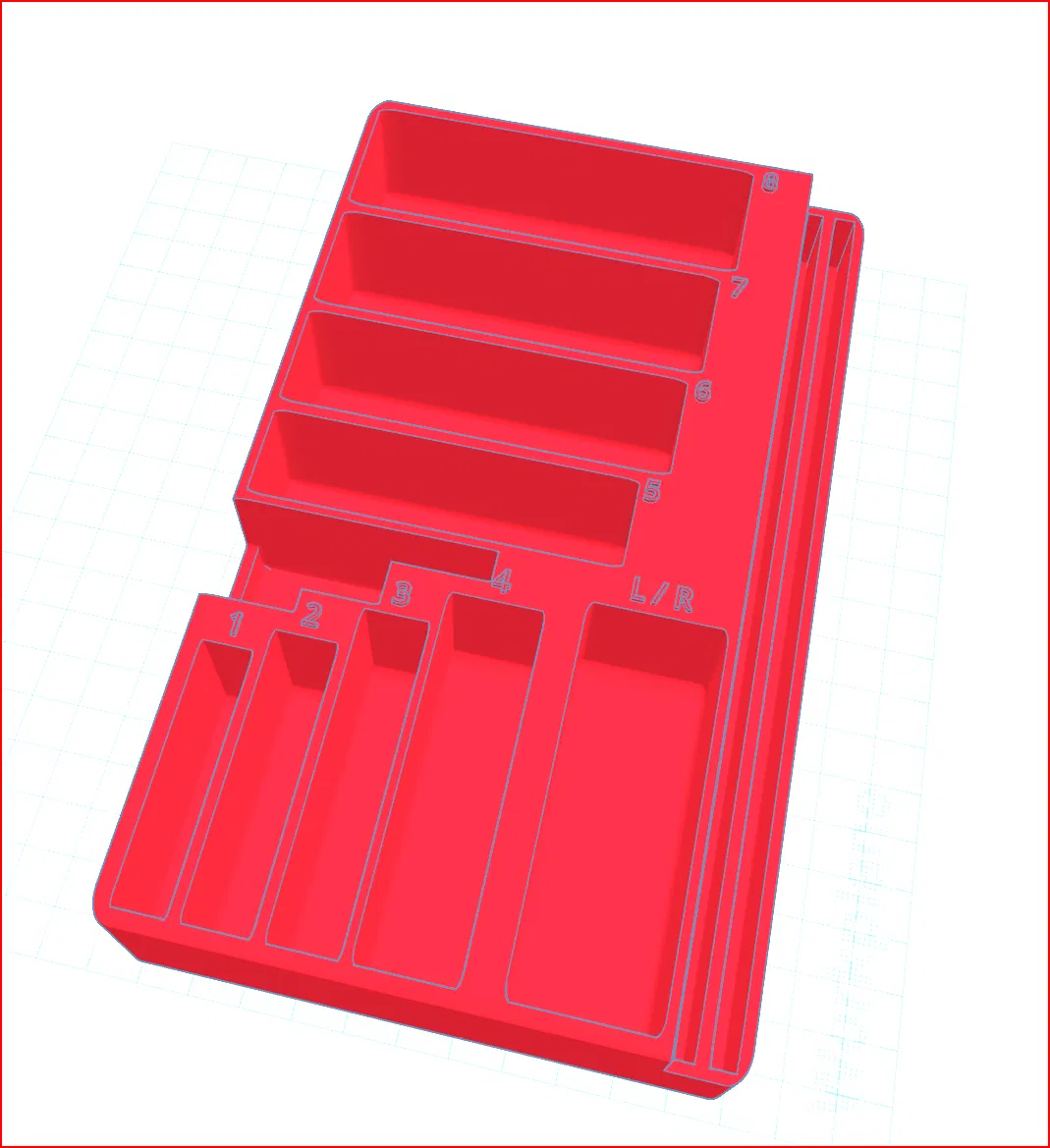 Mẫu in 3D này giúp sắp xếp gọn gàng các phụ kiện tông đơ WAHL, bao gồm các lược với nhãn số, cọ, dầu và cả hai chiếc lược đi kèm. Sản phẩm được thiết kế để vừa vặn vào hộp đựng gốc của bộ tông đơ mua từ Costco, giúp bạn dễ dàng tìm kiếm đồ dùng.