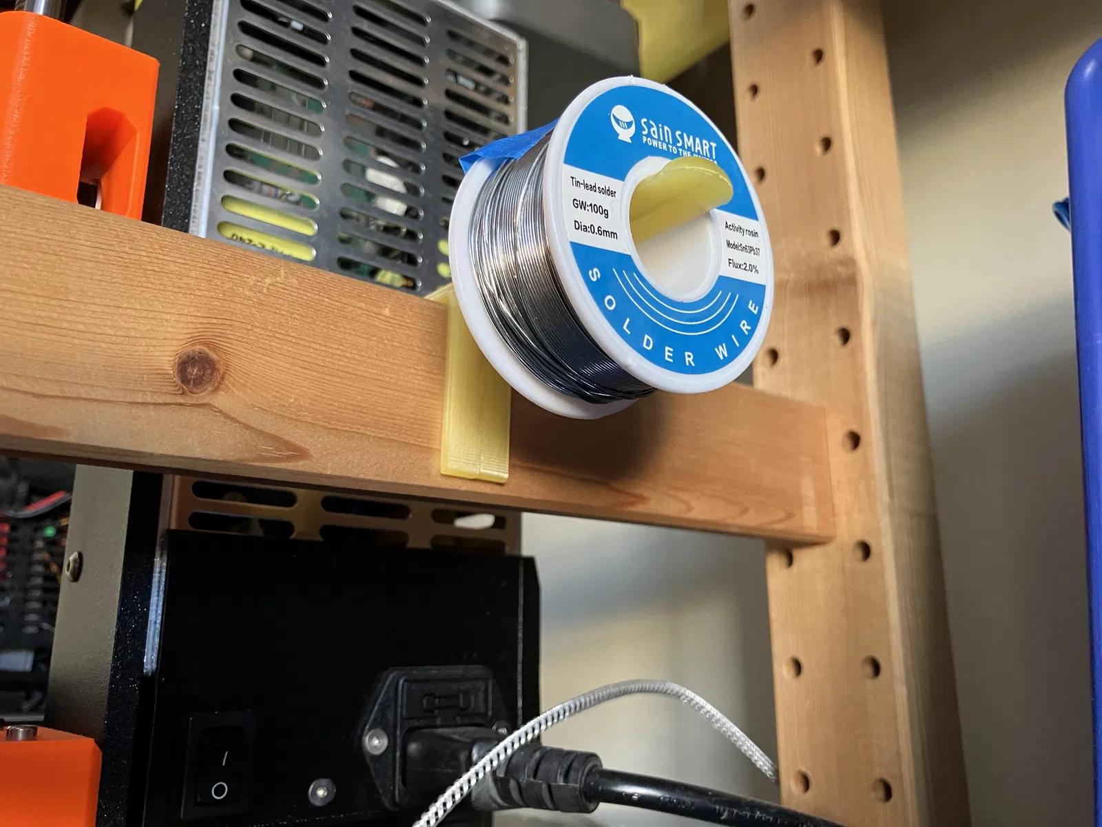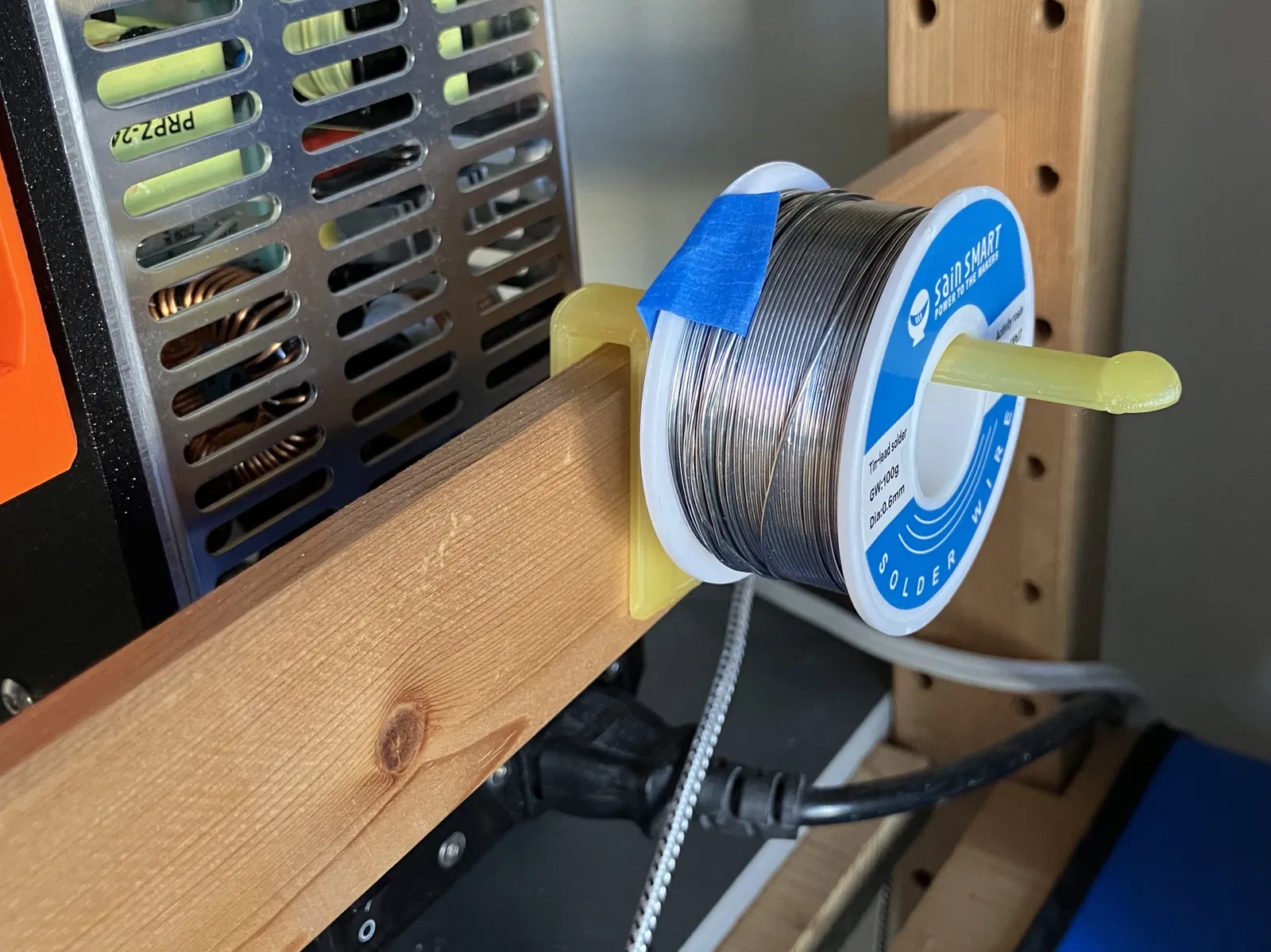 Một trục gài đơn giản để giữ cuộn thiếc hàn. Nó gài vào thanh ngang của các cạnh bên tủ Ikea Ivar.
