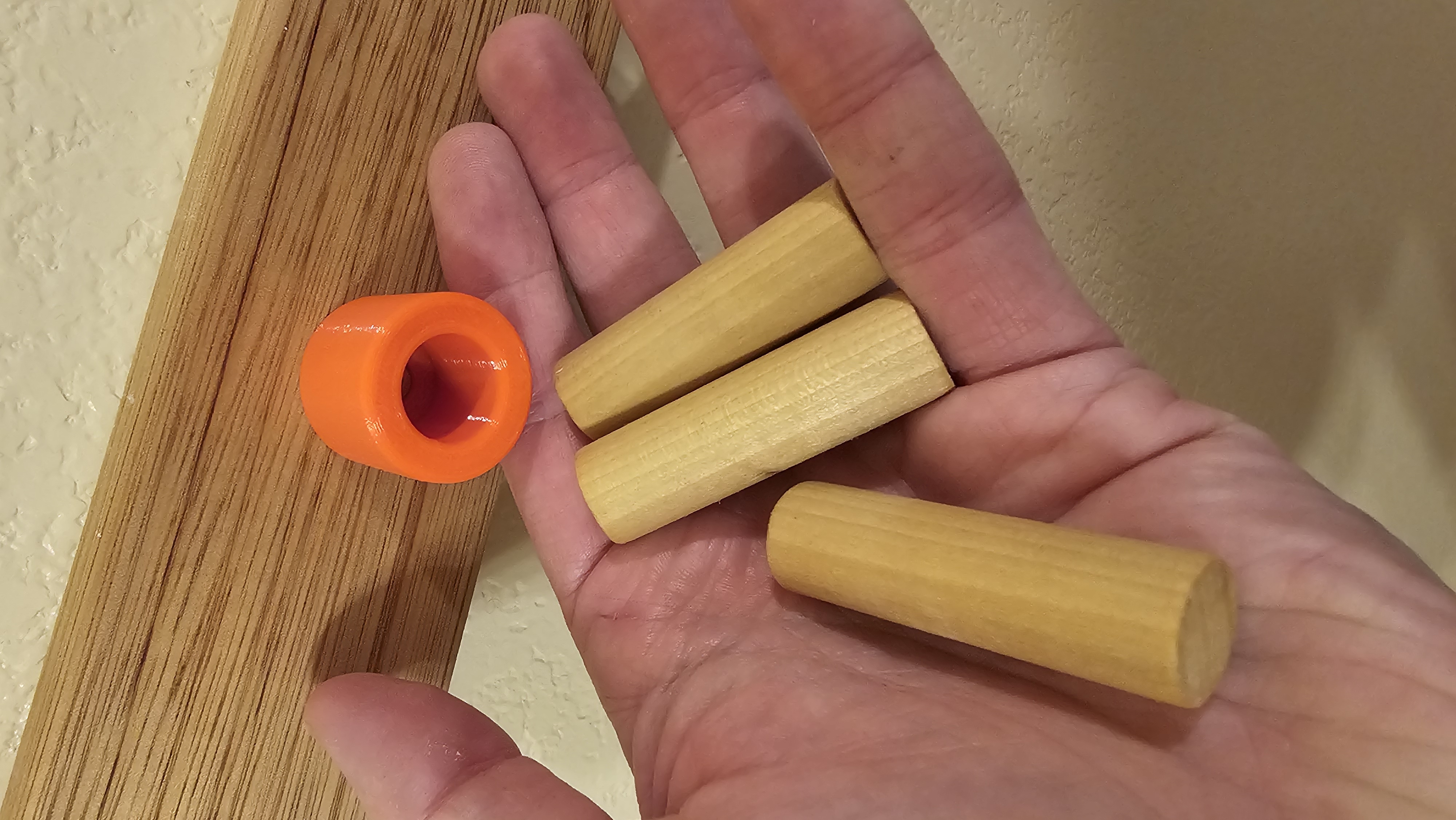 In với mặt có lỗ vít hướng xuống dưới, máy in sẽ tự tạo các gân bên trong để giữ thanh gỗ tròn chắc chắn. Tôi dùng 20% infill với vật liệu PETG.