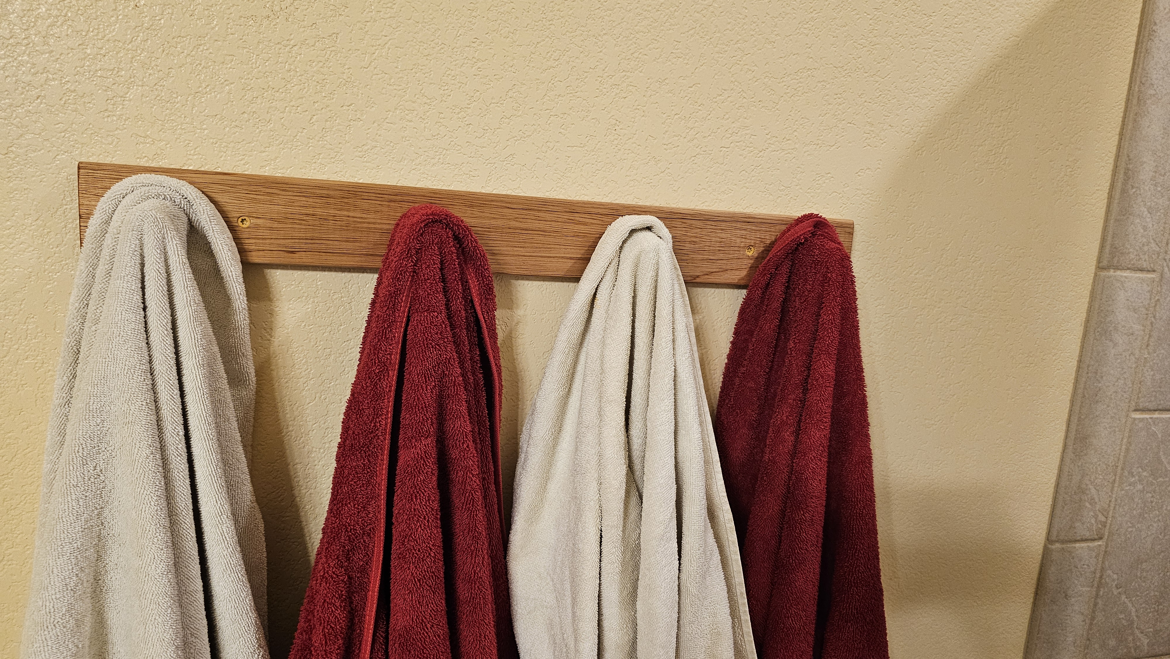 Thanh gỗ tròn dùng có thể có độ dài tùy ý. Tôi đang xài một đoạn 2" thấy hợp với khăn tắm nhà mình.
